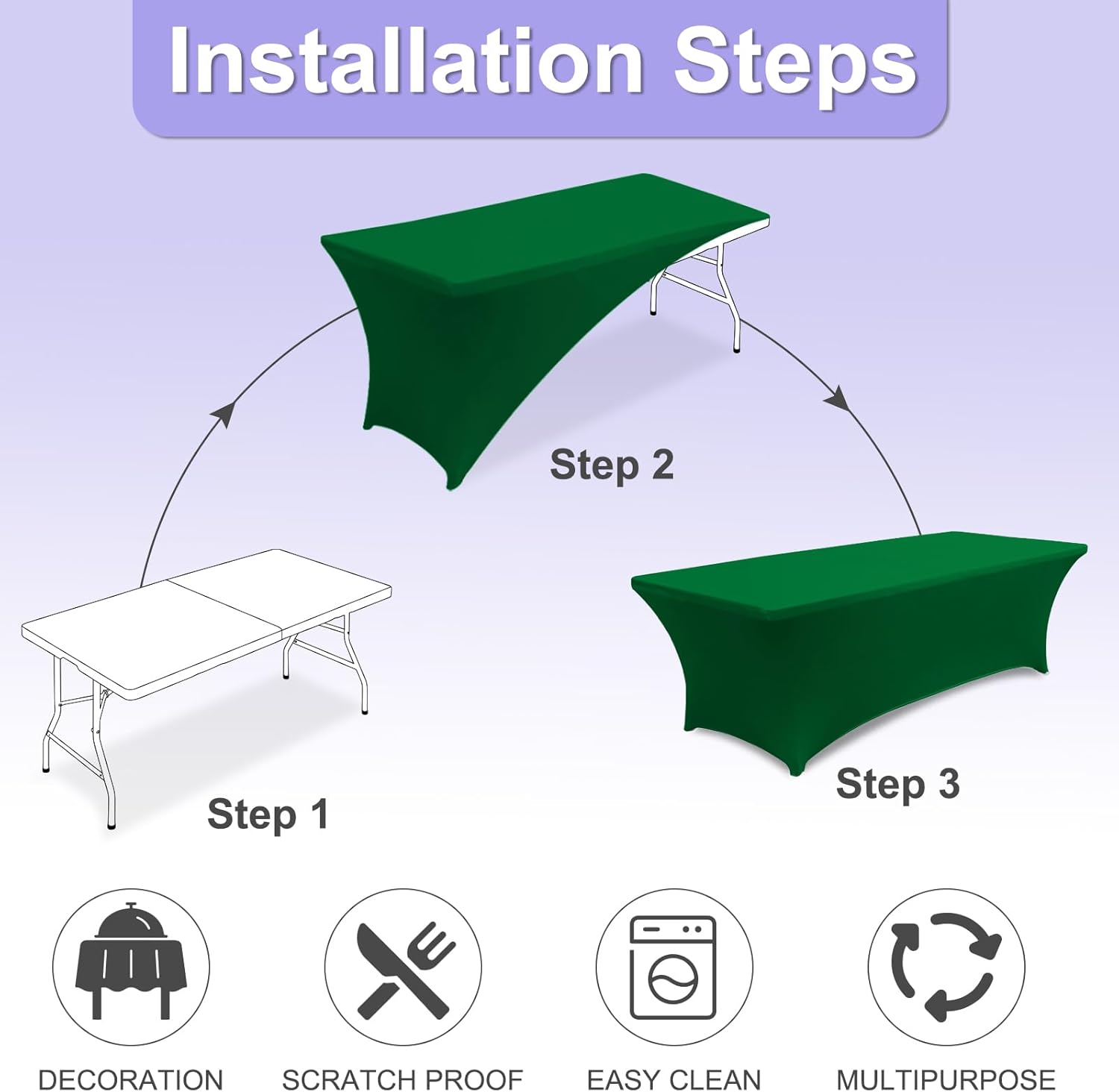 ABCCANOPY 6 FT Forest Green Spandex Table Cover Stretch Fitted Wrinkle Resistant Tablecloth Reuse for Rectangular Folding Table Patry Event Wedding Banquet Protector