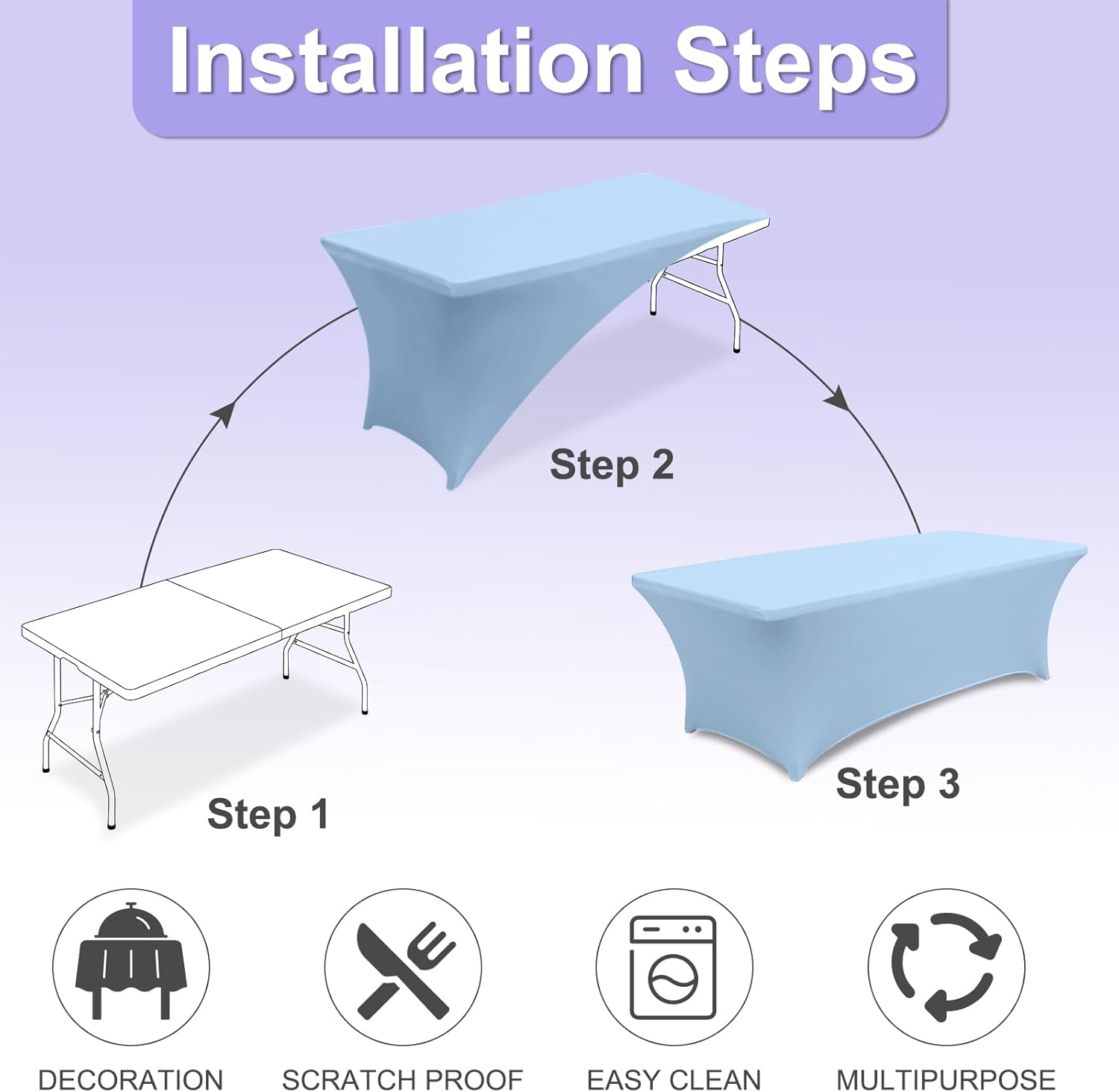 ABCCANOPY 6 FT Spandex Table Cover Stretch Fitted Wrinkle Resistant Tablecloth Reuse for Rectangular Folding Table Patry Event Wedding Banquet Protector Sky Blue