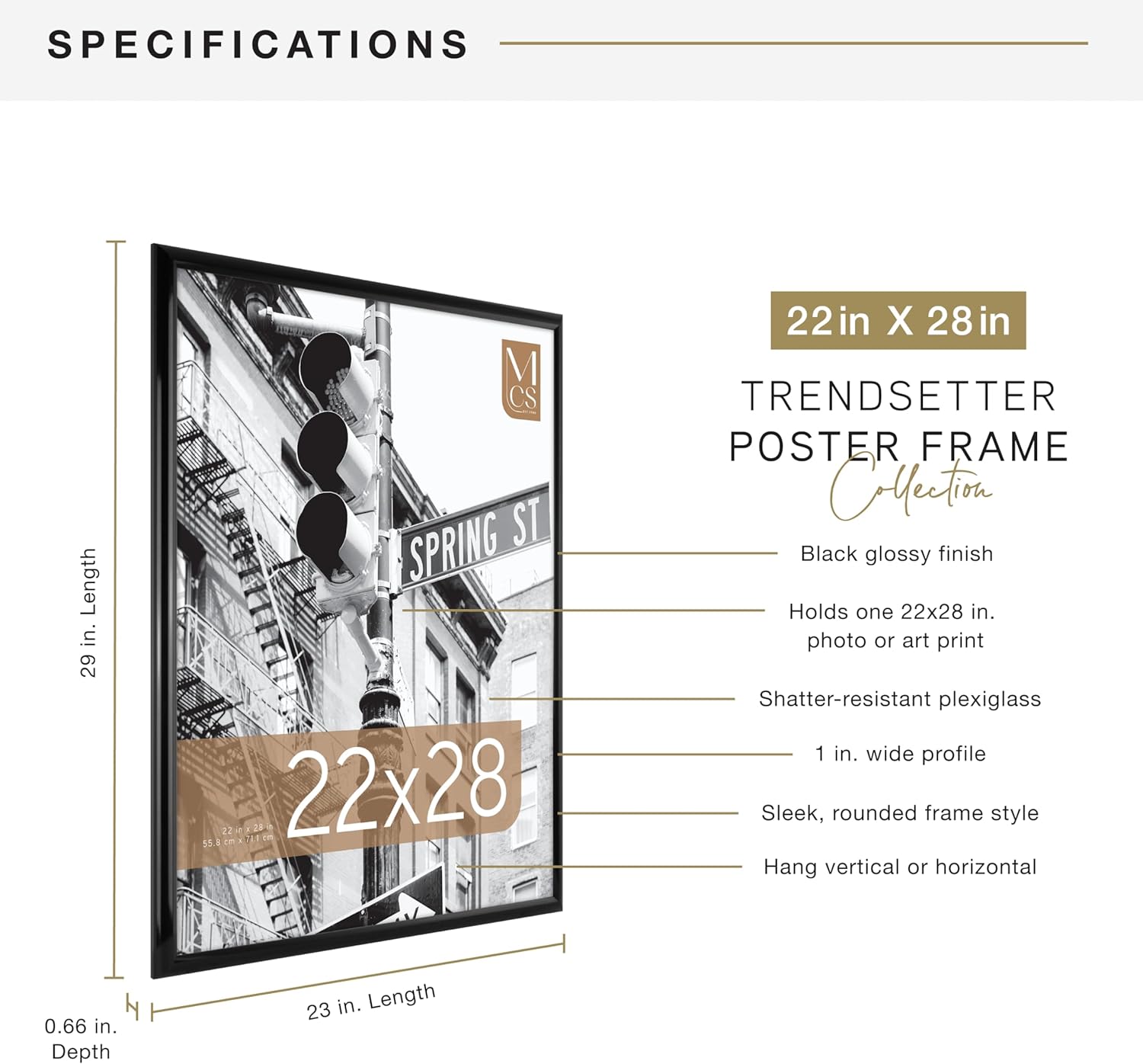 MCS Trendsetter 22x28 Poster Frame Black High-Gloss, Vertical & Horizontal Wall Hanging Large Picture Frame for Photos, Posters & Art Prints (1-Pack)