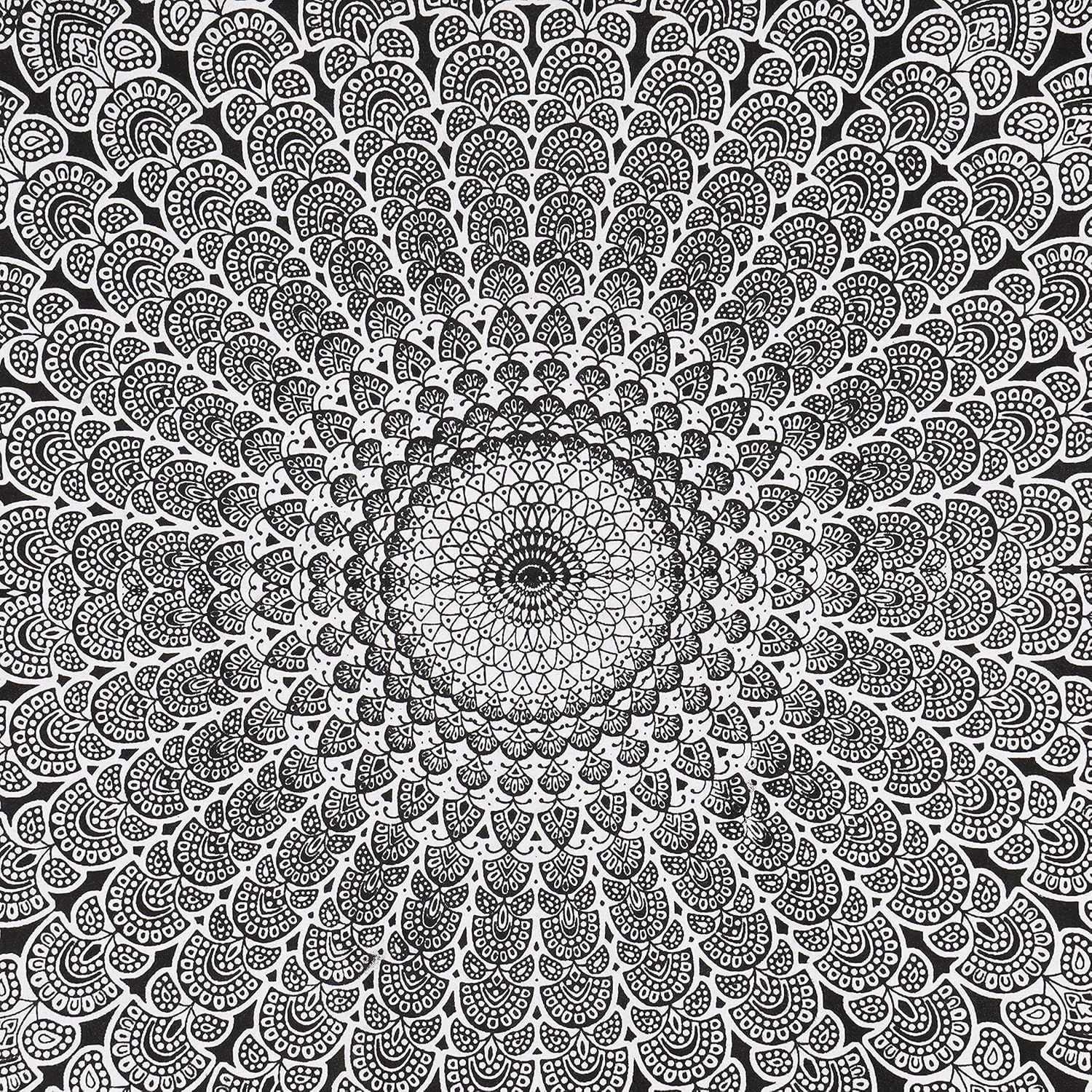 Bless International Handmade Indian hippie Bohemian Psychedelic Peacock Mandala Wall hanging College Dorm Beach Throws Table Cloth Bedding Tapestry (Black White, Queen(84x90Inches)(215x230Cms))