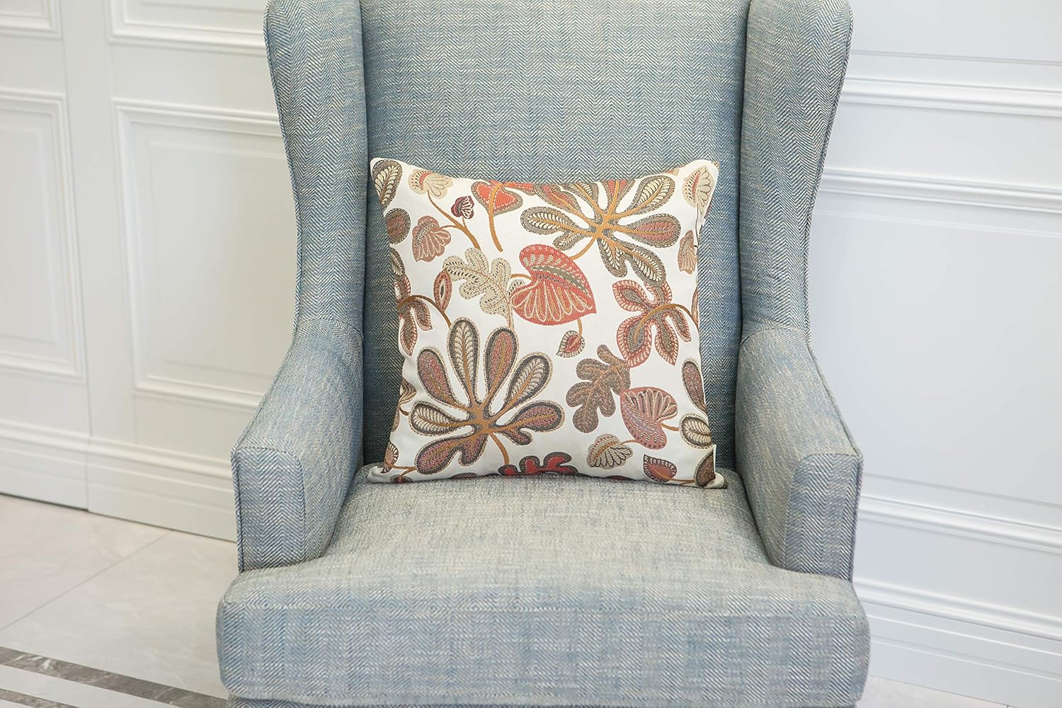 Set of 2 Jacquard Tropical Leaf Pattern Throw Pillow Covers Decorative Pillowcase 20X20 Inches,Coral Cream