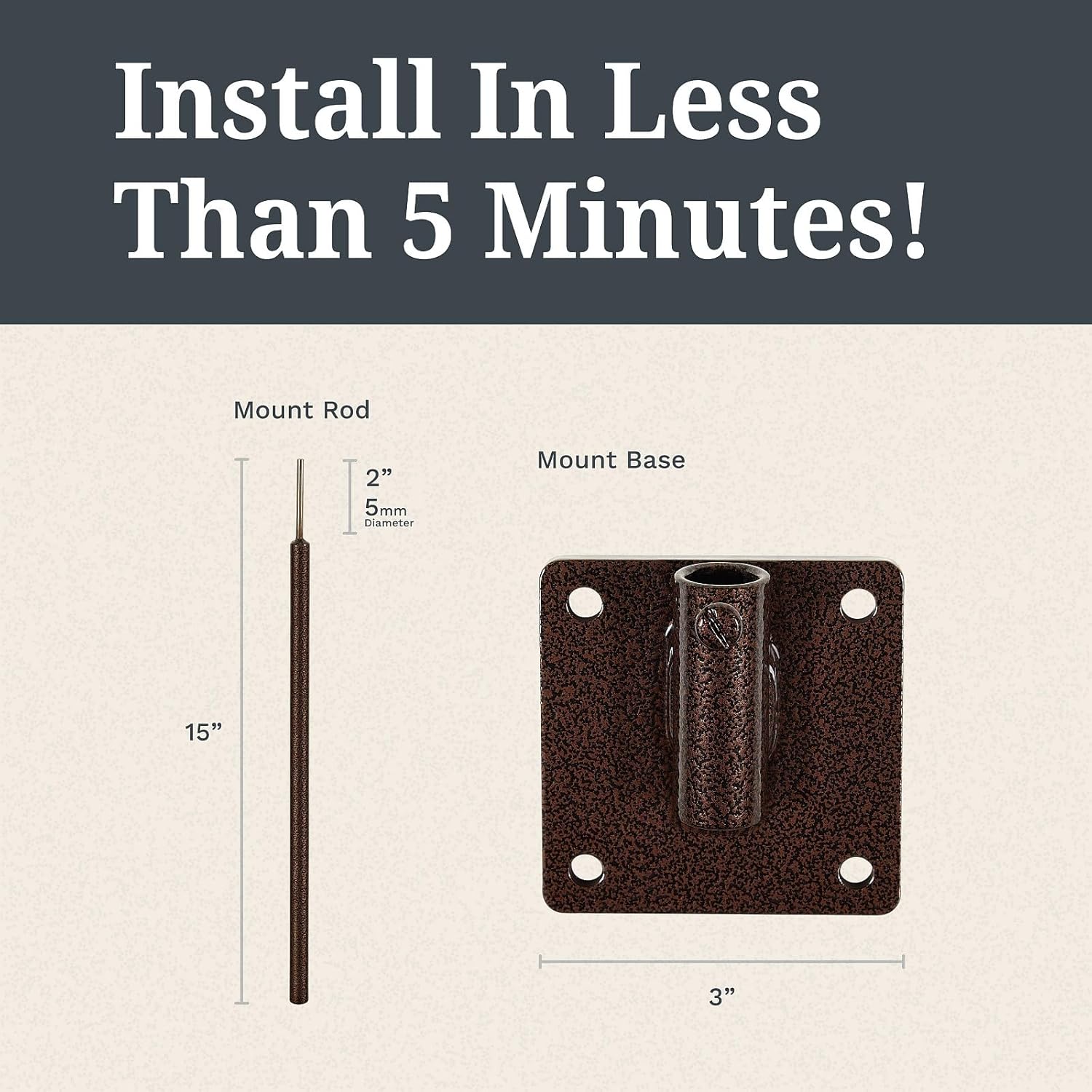 - Easy Installation – Installs in less than five minutes! Topper designs are interchangeable to easily customize for every season or occasion. Other mounting types can also be swapped, with options for a roof, garden stake, deck, or wood post.