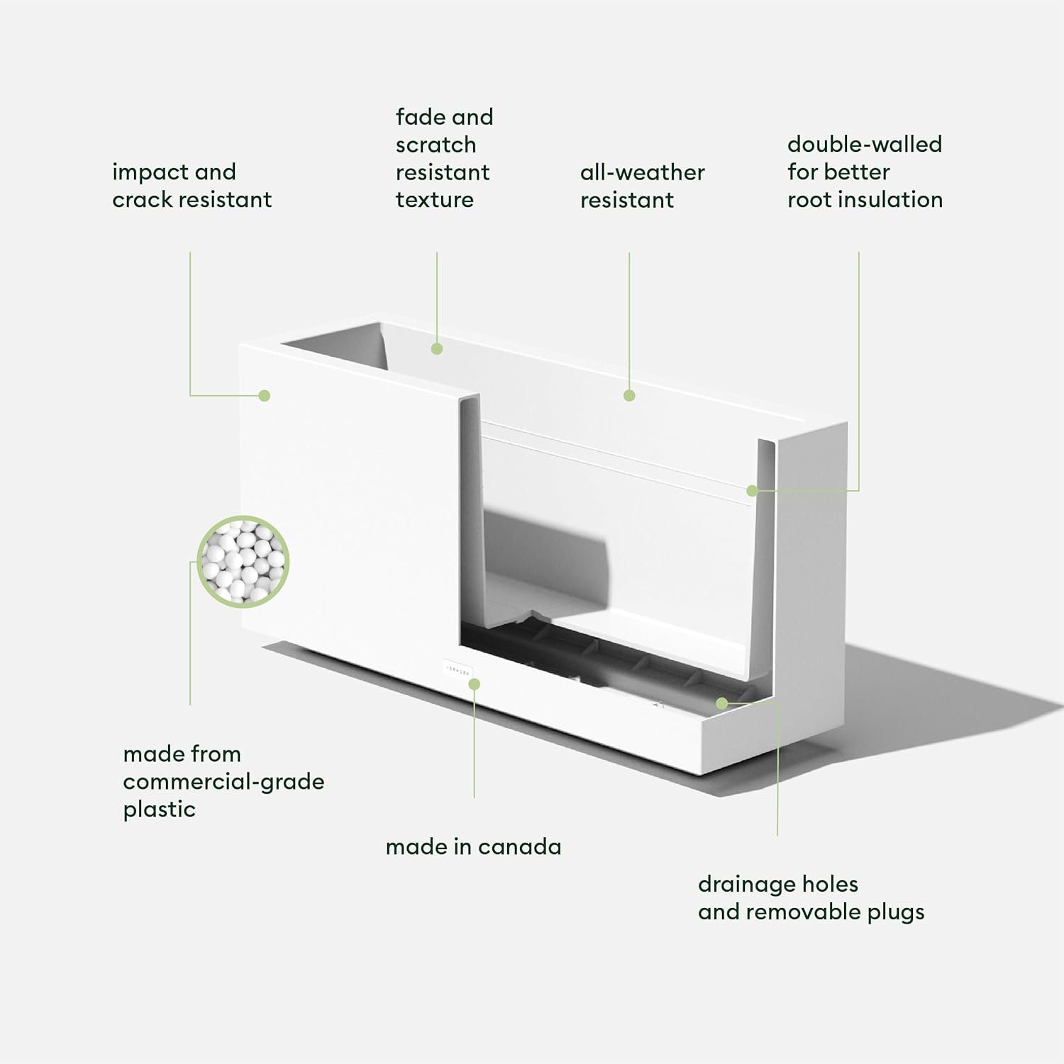 - PROUDLY MADE IN CANADA - Designed and made in Canada, so you can rest assured that your Veradek long planter will be of the highest quality and last all year round