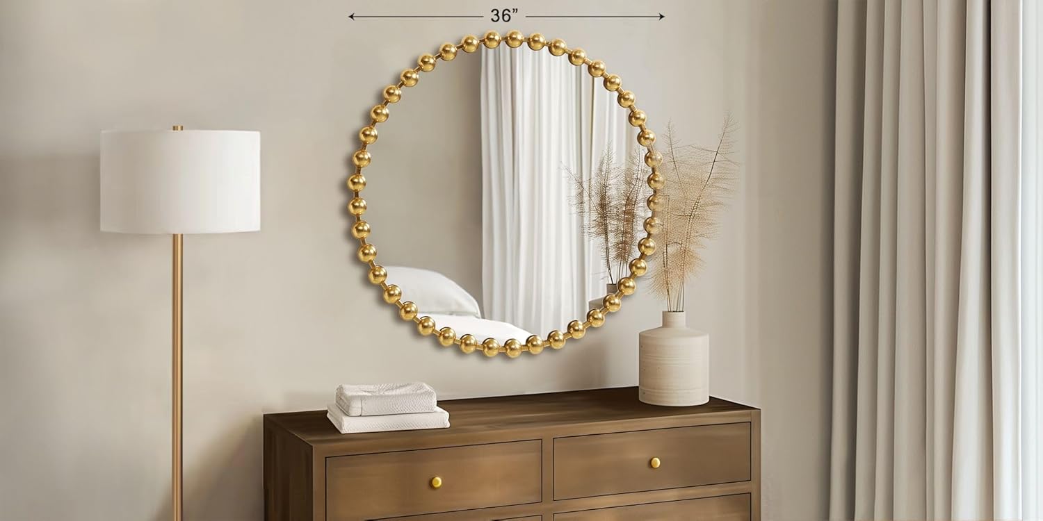 - For your convenience it's ready to hang featuring keyhole fixtures on the back make it easy to hang on any wall. Please note this mirror is on the larger side (36") in diameter, and has a substantial weight (19.64 lbs.) Please make sure you have the required wall space for hanging before purchase.