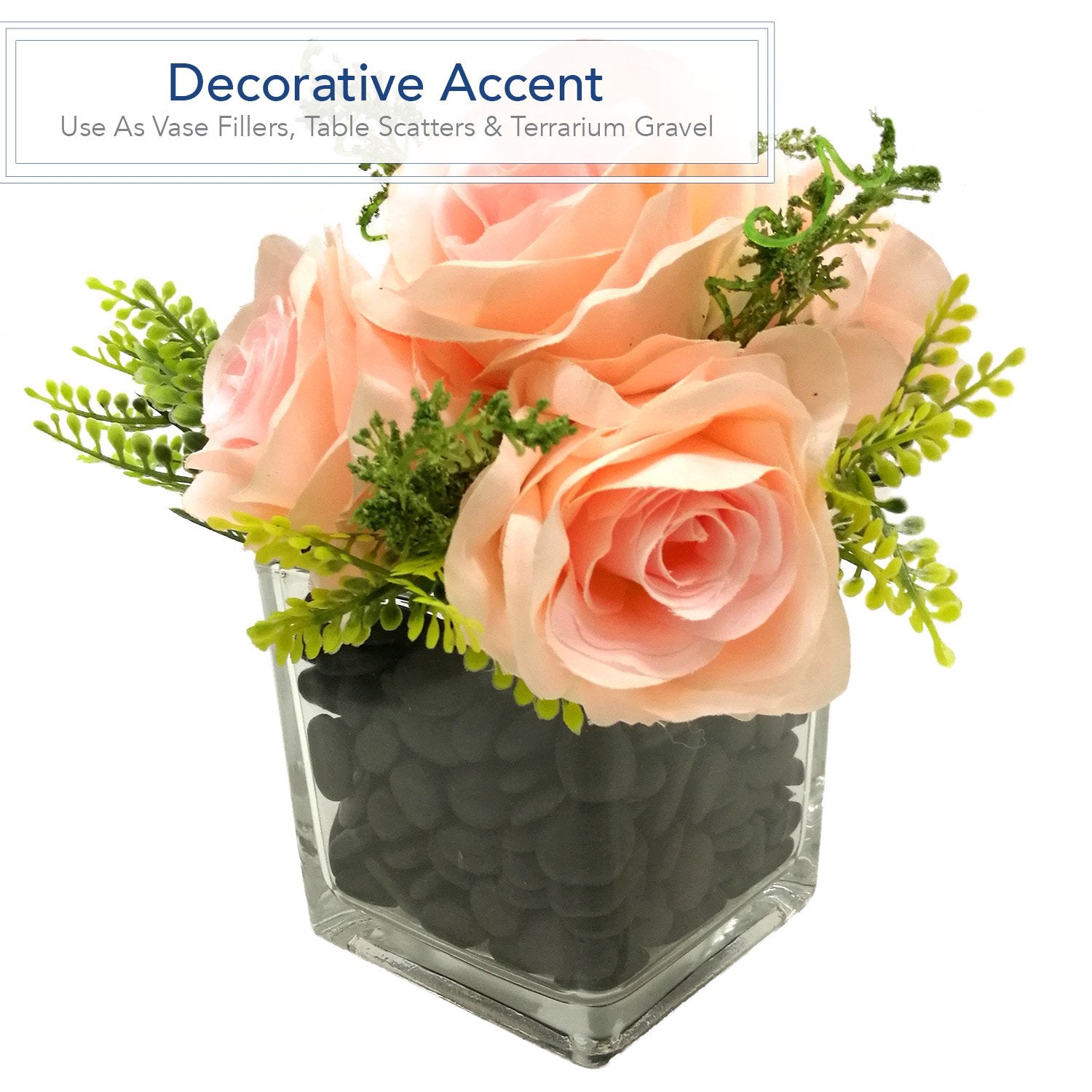 - MANY USES- If you want to add extra beauty in your garden, lawn and even to your potted plant this pack of pebbles is ideal for you. It is perfect for home decor and a creative interior and exterior design. Use for flower arrangements, vase fillers, walkways, water features, exposed aggregate flooring or walls, swimming pool areas and many other areas. It could also be used as an accent to water gardens, ponds, and terrariums.