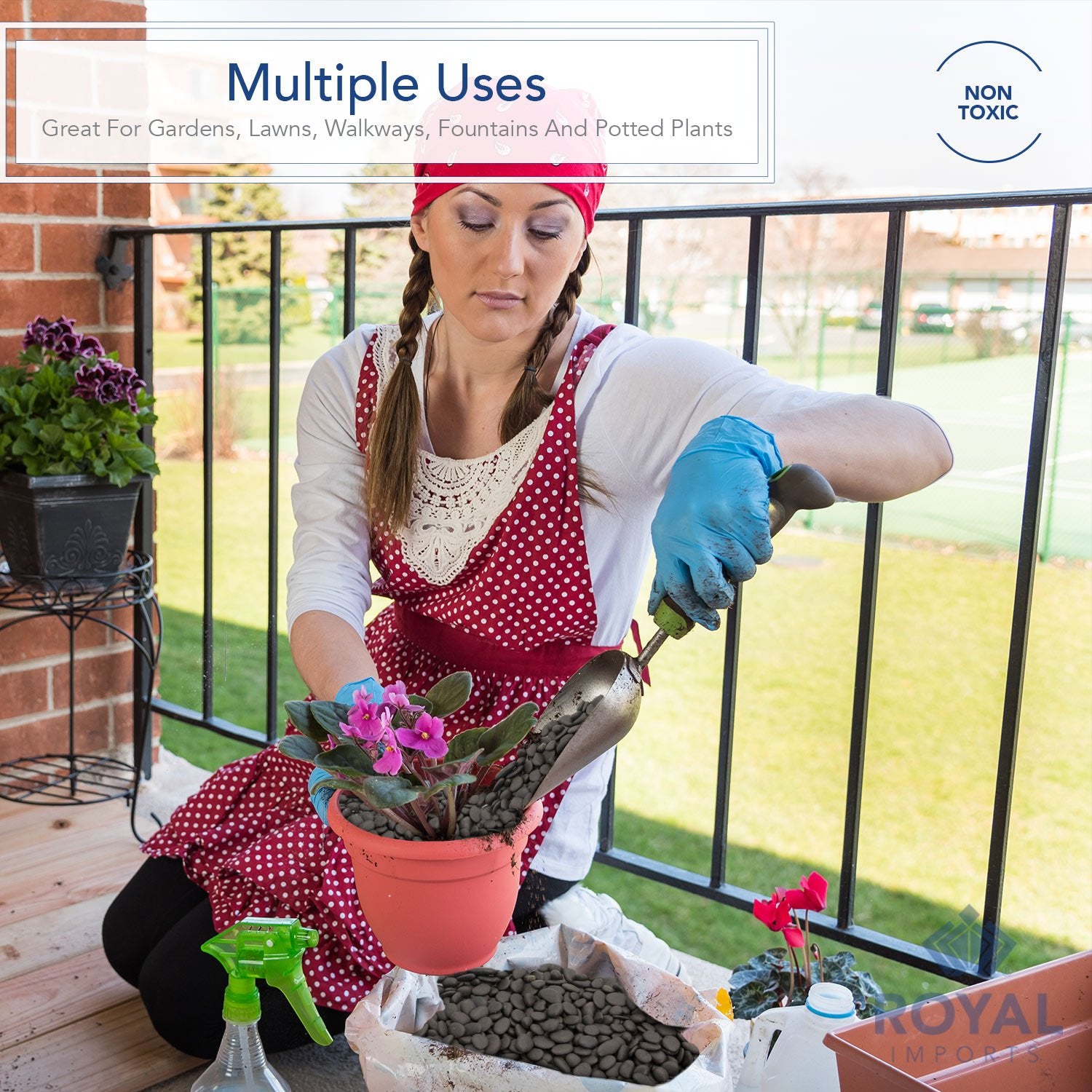 - NATURAL STONES- These high quality natural stones by Royal imports are non-toxic and eco-friendly river rocks. Their natural attribute will make them last longer because they will not deteriorate like mulch does. Common applications include flowerbeds, groundcover, decorative concrete topping, or walkway paving. Decorative rocks are a permanent and cost-effective alternative to annual wood mulching.