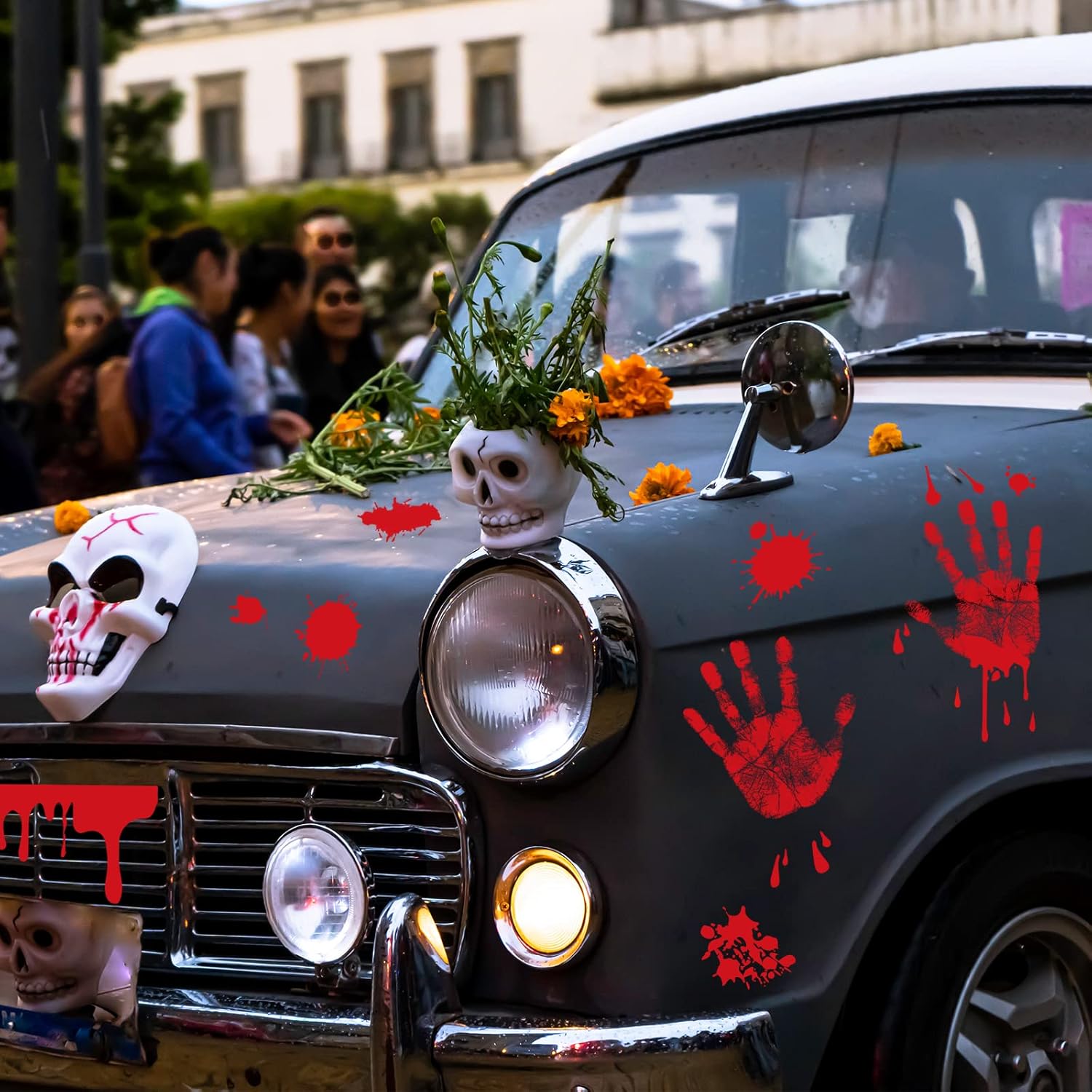 KUUQA 4 Pcs Bloody Handprint Clings Horror PVC Stickers Decals for Halloween Decorations