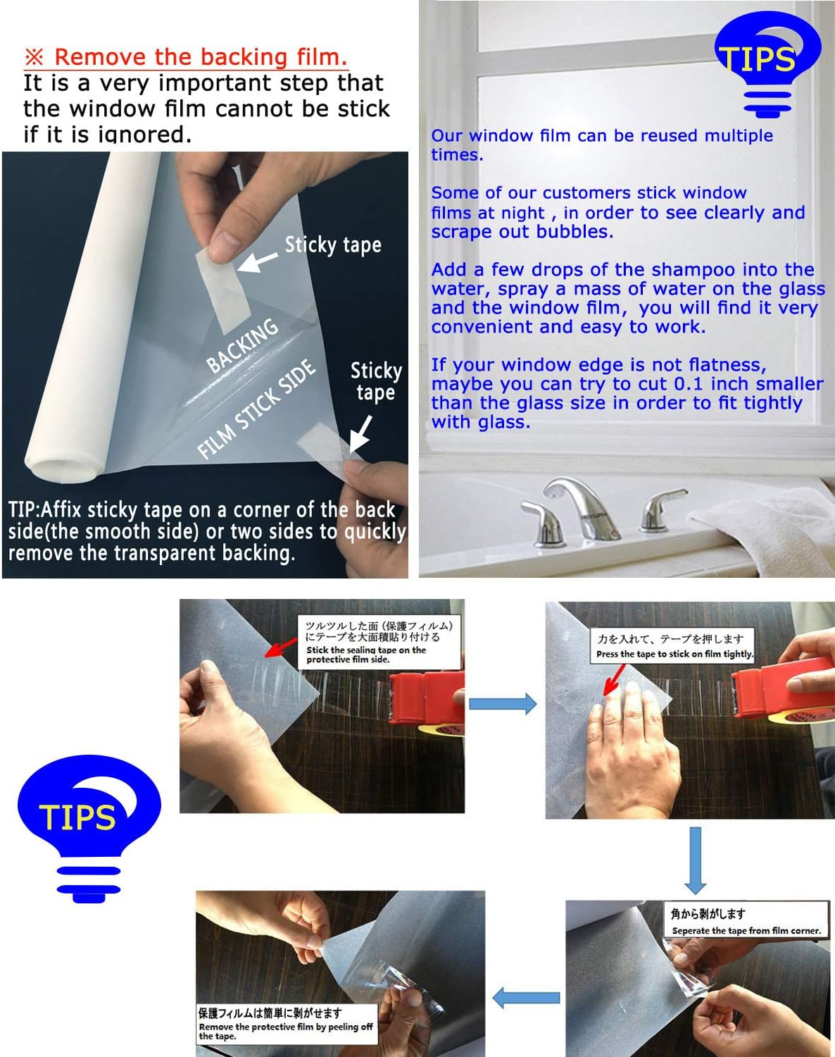 - Reusable Static Cling: This window film is no-glue, easy to position and remove without any residue or any harmful substances release. So it can be reused if not damaged or smudged.