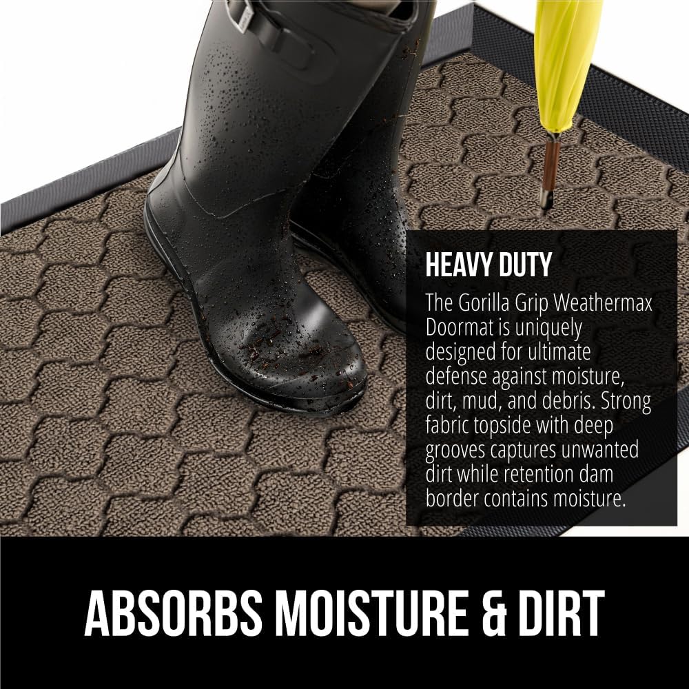 - THE ORIGINAL WEATHERMAX ALL SEASON DOORMAT: Gorilla Grip's Original WeatherMax doormat is built tough with a heavy duty, yet soft and flexible construction; deep grooves, beveled rubber border and retention dam help capture dirt, debris and moisture