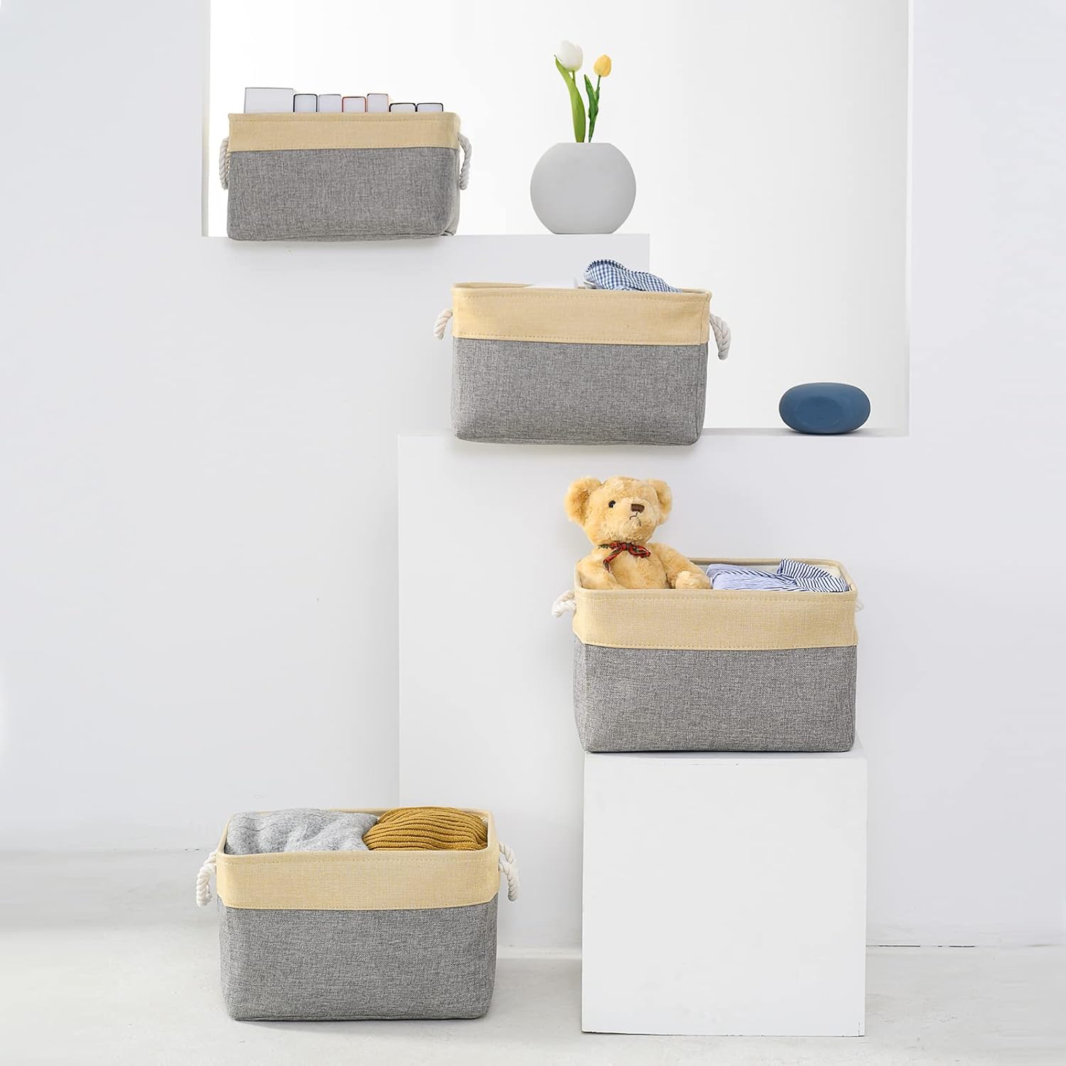 - DECORATIVE & ARTISTIC & GIFT BASKET - As a must have for home organization and storage, TheWarmHome organizer bins is the perfect gift basket. 1.TheWarmHome Bins had big storage capacity 2.Minimalist design and neutral grey color can be integrated into any home decorations and styles.3.Contrast other material, Fabric softer and Foldable, easy storage and clean, better use in home. 4.10 years + professional factory, Use better EVA fabric,TheWarmHome, WARM YOUR HOME