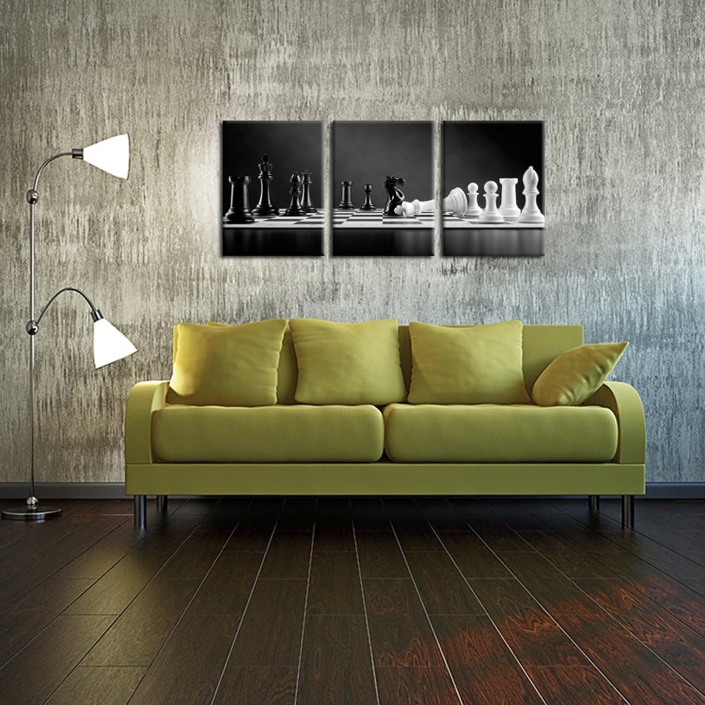 iKNOW FOTO 3 Panel Modern Black and White Chess Board Canvas Wall Art Poster Prints Checkmate Move on Chessboard Pictures Still Life Painting Framed Giclee Artwork for Office Decor 12x16inchx3pcs