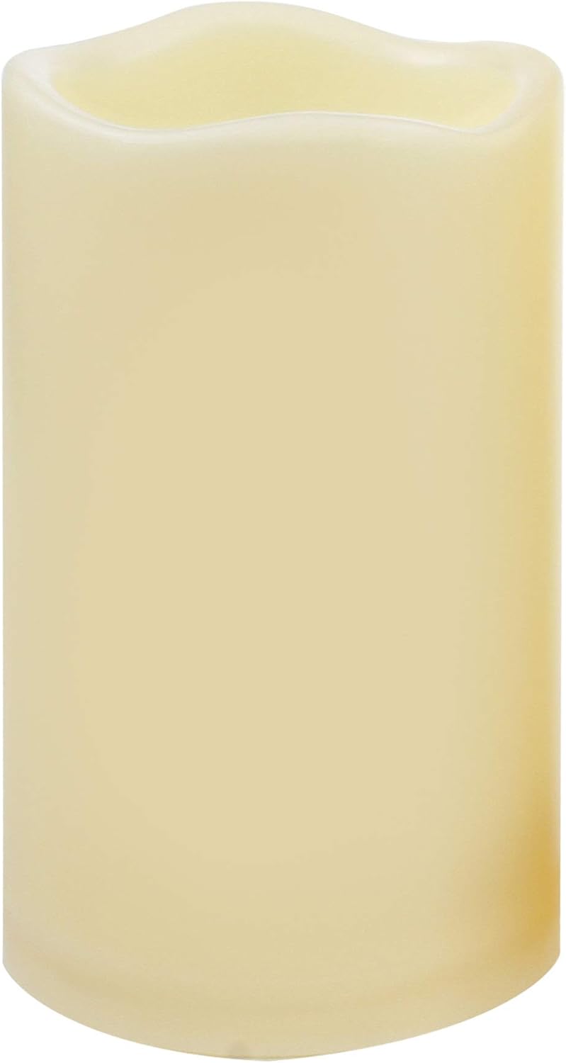 Waterproof Outdoor Battery Operated Flameless LED Pillar Candle with Timer Flickering Plastic Resin Electric Decorative Night Light Lantern Patio Garden Home Decor Party Wedding Decorations D3 xH5