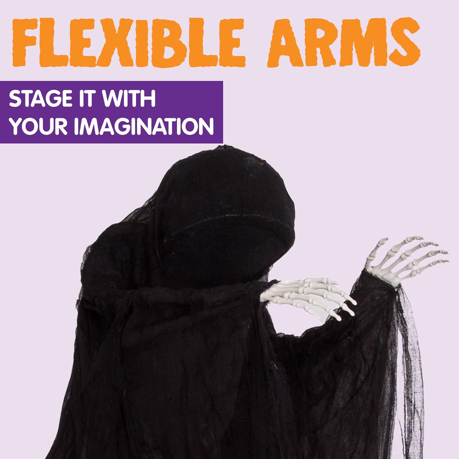 - MORE FUN: The Halloween hanging faceless reaper decor's arms can be Adjusted, close put them in the front to act as he is flying to the guest or open put them on side to act as he is floating in the air. This helps you create a creepy and scary atmosphere for any Halloween event. These are great Halloween props to surprise your friends. Perfect for Halloween Themed Party, Indoor and Outdoor Decorations, or Haunted House Decoration!