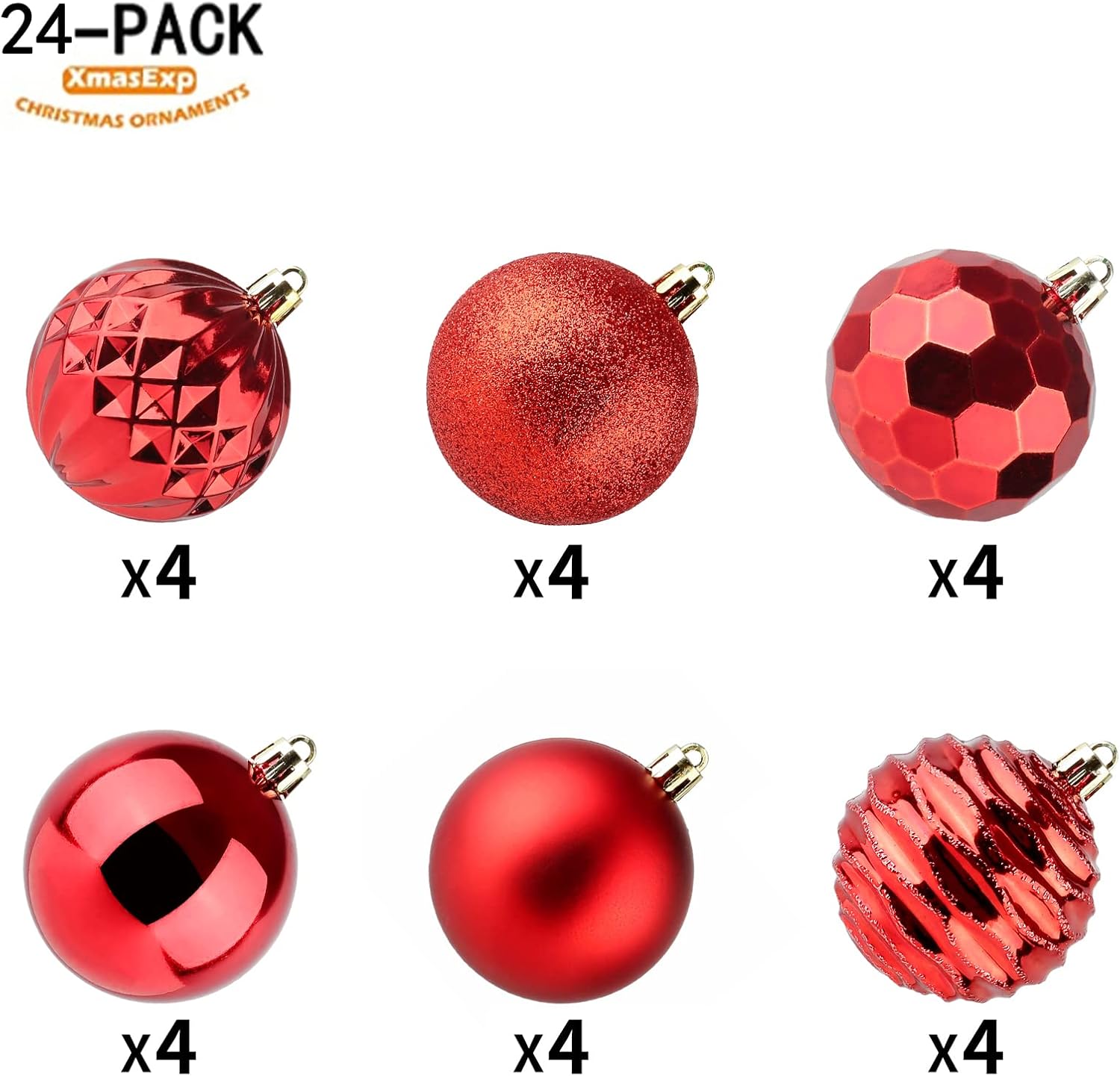 XmasExp 60mm/2.36" Christmas Ball Ornaments Shatterproof Christmas Ornaments Set Decorations for Xmas Tree Balls - 24ct (2.36'', Red)