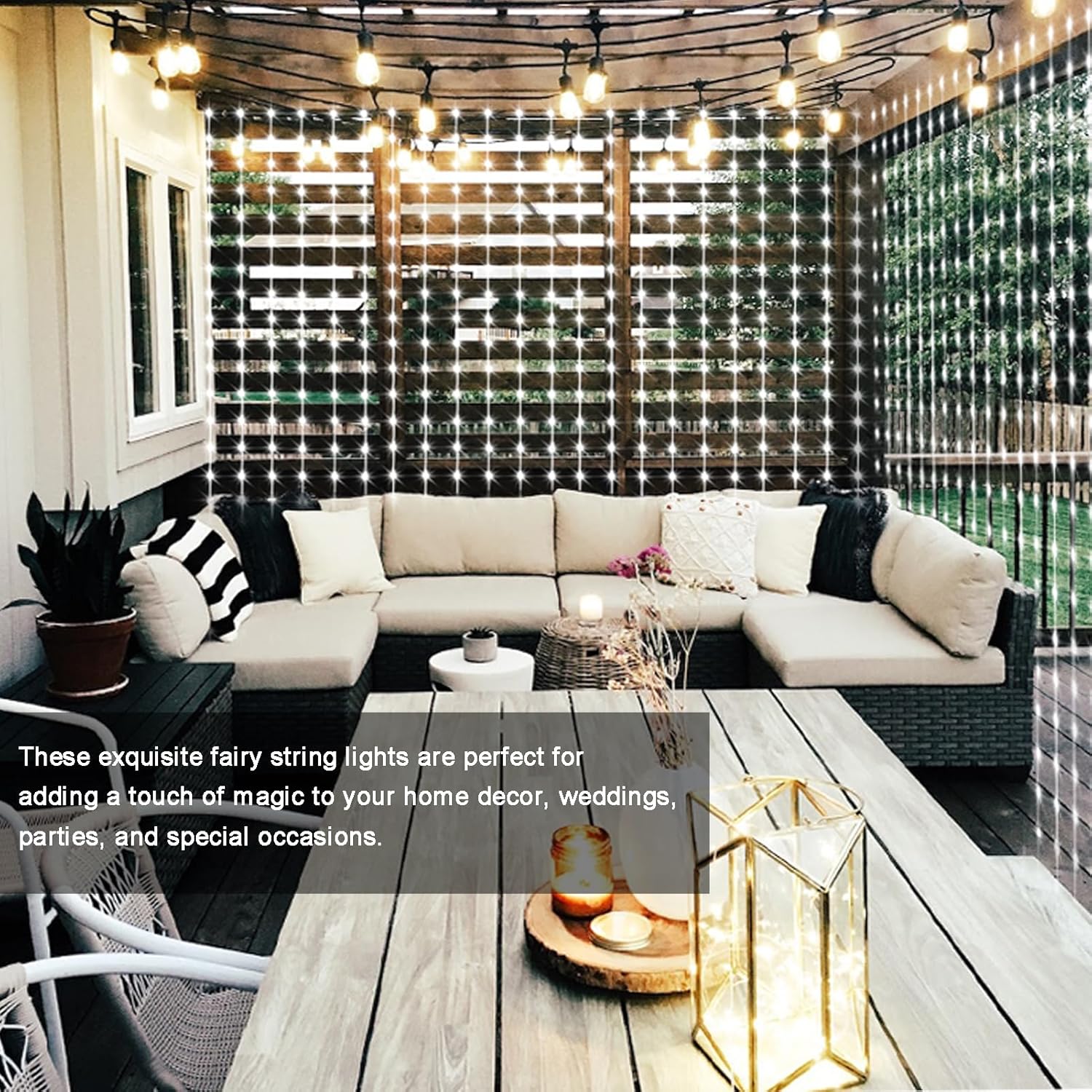 - 200 LEDs Fairy String Lights: 6.6ft long x 6.6ft drop transparent wire strand of 200 LEDs for decorative lighting.