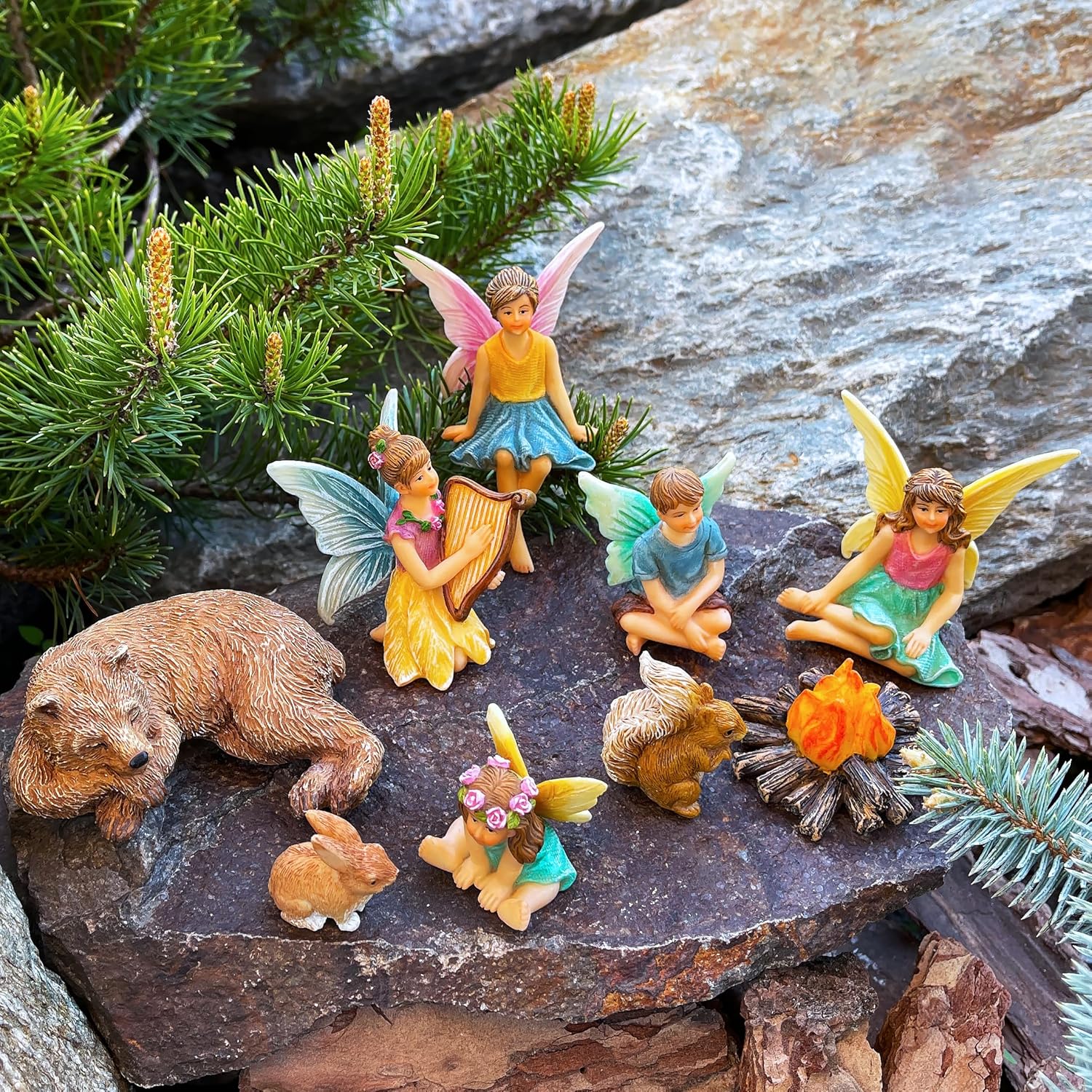 Mood Lab Fairy Garden - Miniature Fairies Figurines Accessories - Camping Kit of 9 pcs - Set for Outdoor or House Decor