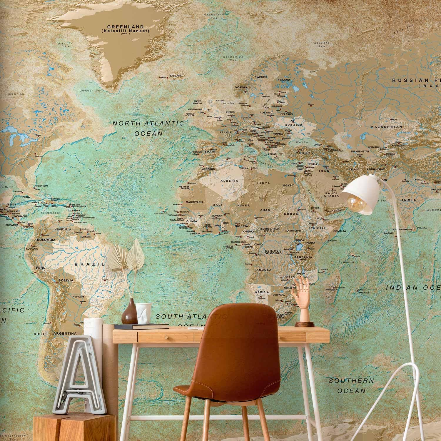 artgeist Wall Mural World Map 193x110 in - XXL Peel and Stick Self-Adhesive Foil Wall Mural Removable Sticker Premium Print Picture Image Design Home Decork-A-0105-x-a