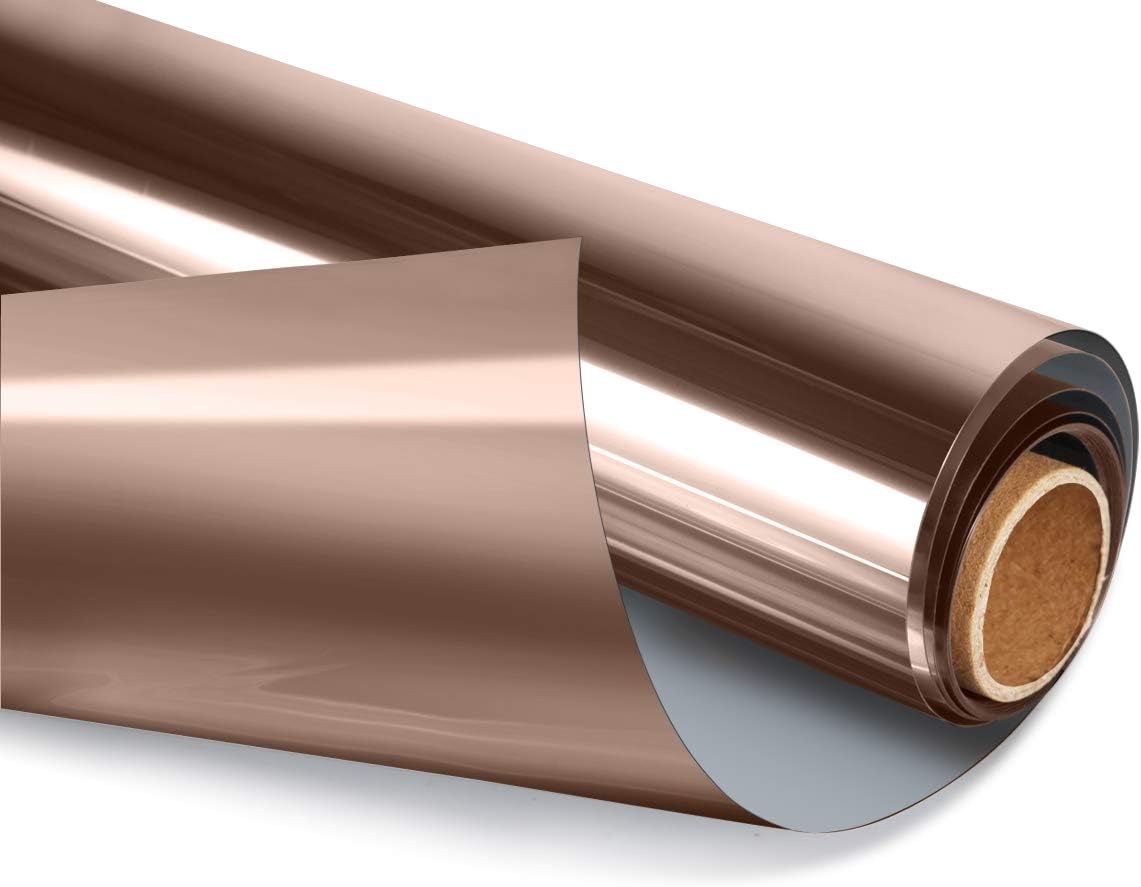 HIDBEA Window Privacy Film Daytime, Heat Control Anti UV Reflective One Way Mirror Window Tint for Home, Non-Adhesive Self Static Cling Window Stickers (Brown-Silver, 17.5 Inch x 6.5 Feet)