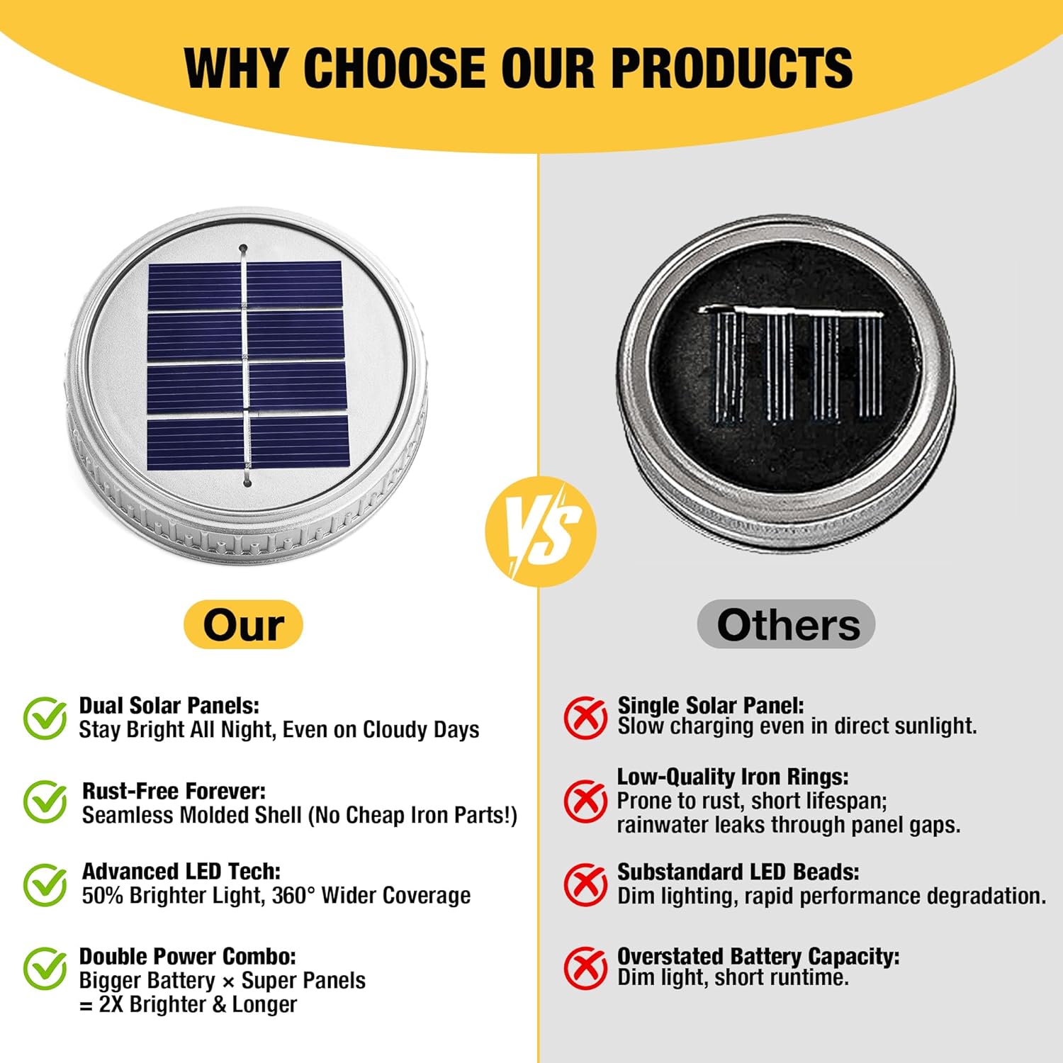 - 《 The Gift of Real Value》Add to cart and get: 1, The power to outshine fake 600mAh jars ; 2, The tech to laugh at rust ; 3, A set of 12 honest lights that turn sunlight into art, No more leaks, no more lies—just lasting beauty.
