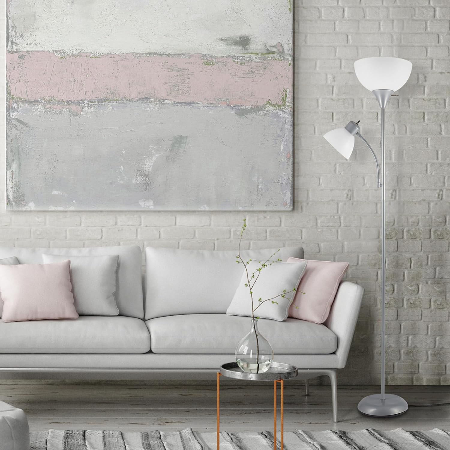 GLOBE Electric 67134 72" Torchiere Floor Lamp and Adjustable Reading Light, Silver, Frosted Shade, Dual Rotary Switch, 3-Step Dimming, Modern Lighting for Living Room or Office, Timeless