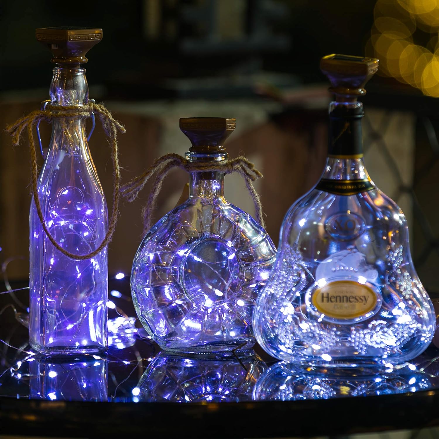 Solar Wine Bottle Lights Outdoor, 20 LED Cork Lights for Wine Bottles Waterproof, Fairy Lights Solar for Wedding Party Garden Patio Decor, Suitable for Most Wine Bottle Mouths-Cool White (8 Pack)