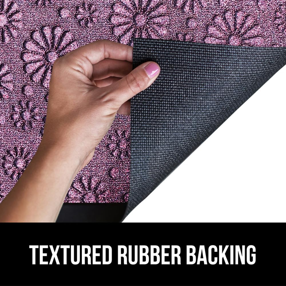 GORILLA GRIP 100% Waterproof All-Season WeatherMax Doormat, 23x35, Durable Natural Rubber, Stain and Fade Resistant, Low Profile, Indoor Outdoor Doormats, Easy Clean Entry Mat, Purple Confetti Daisy