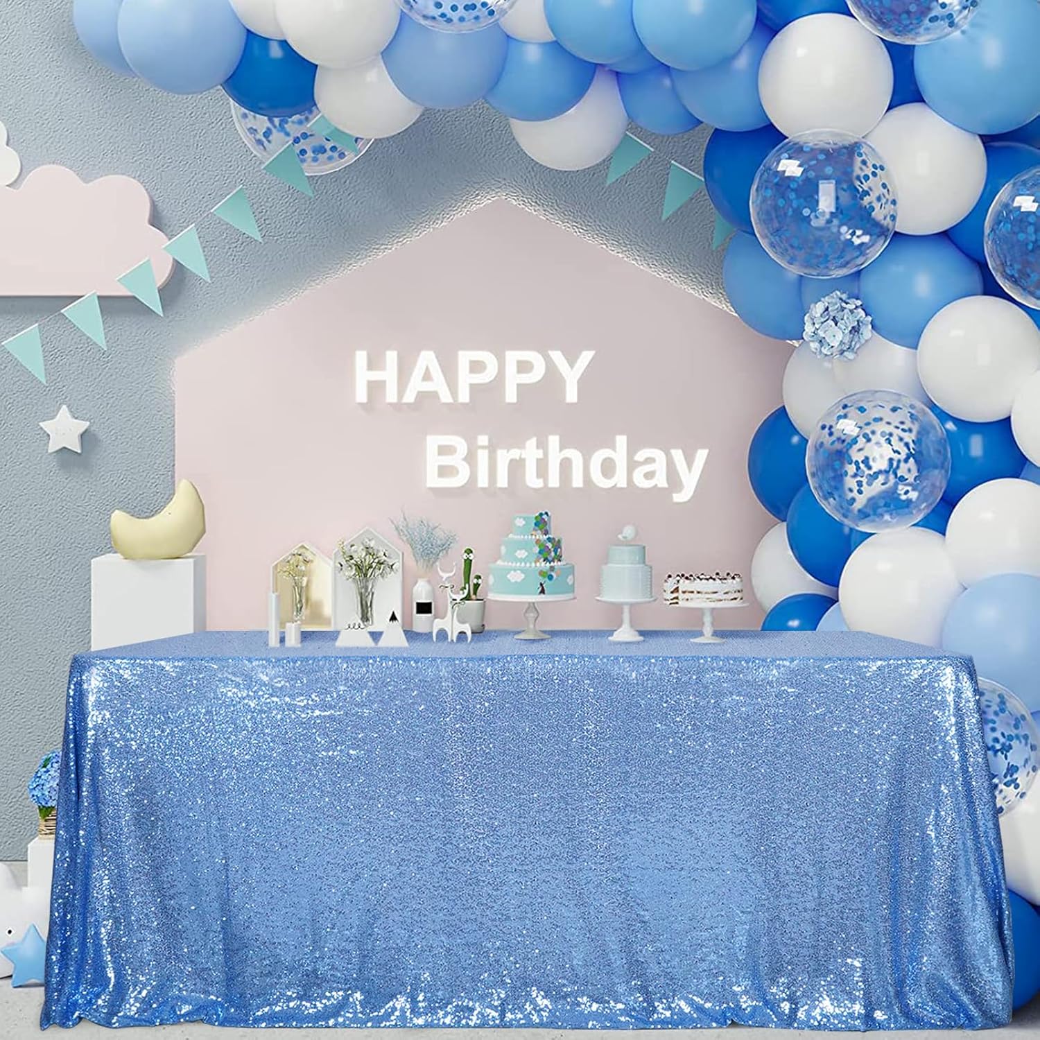 SquarePie Sequin Tablecloth 90 x 156 Inch Baby Blue Sparkly Table Linen for Wedding Party