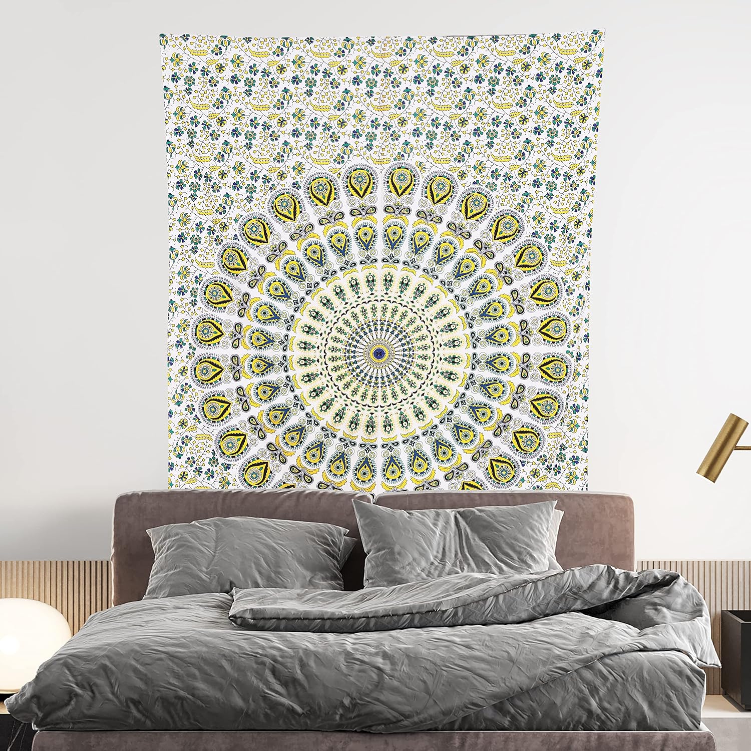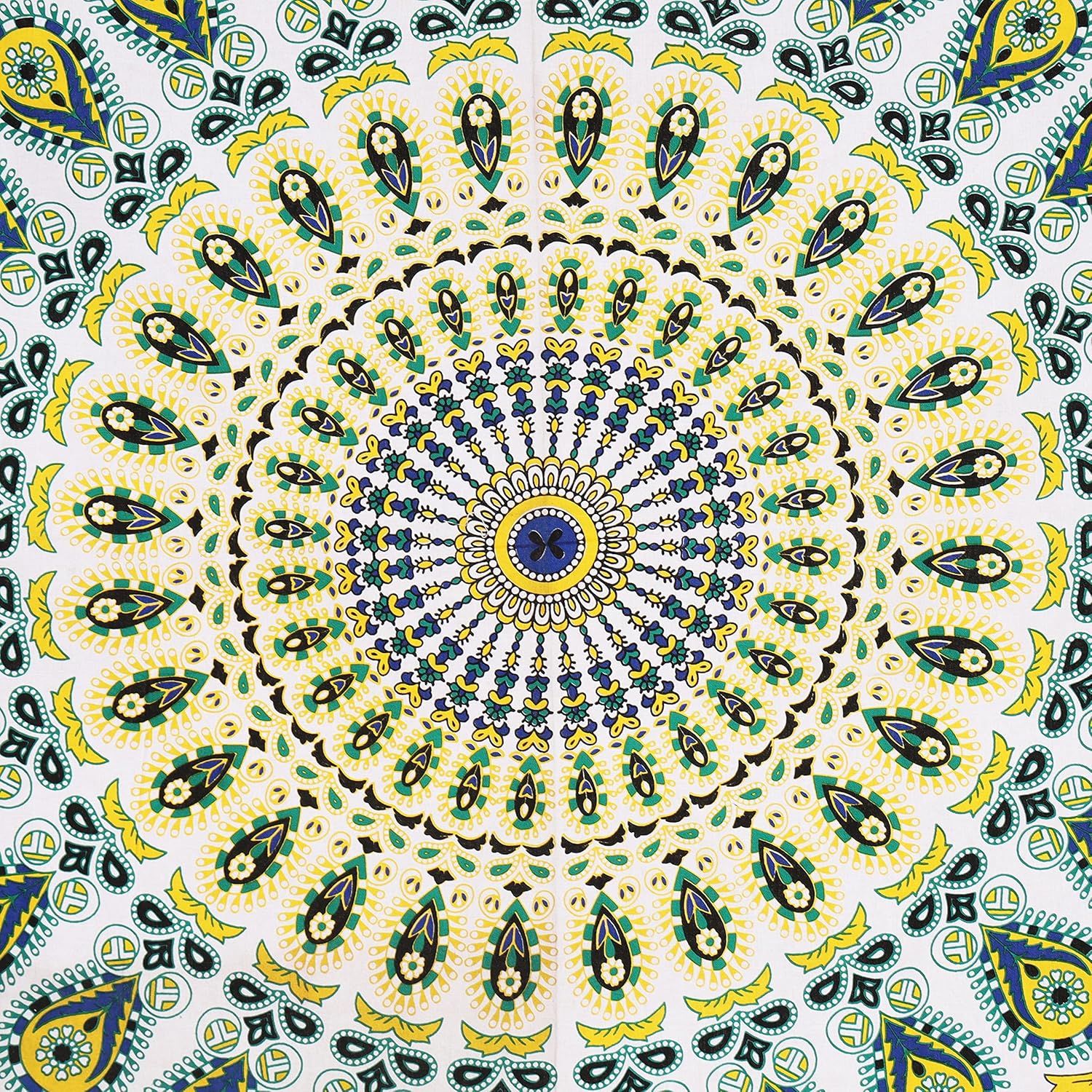 Bless International Handmade Indian hippie Bohemian Psychedelic Peacock Mandala Wall hanging College Dorm Beach Throws Table Cloth Bedding Tapestry (Yellow Green, Twin(54x72Inches)(140x185cms))