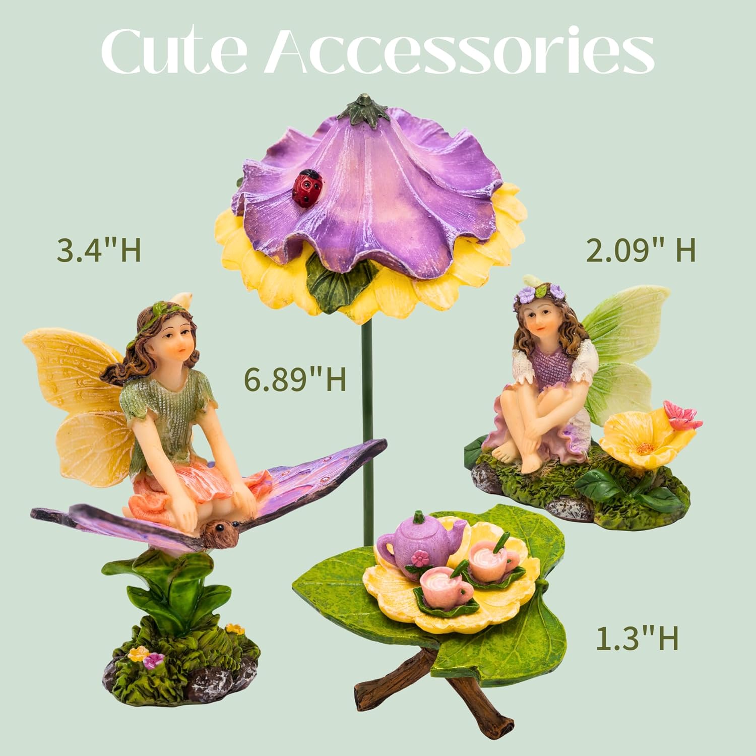 PRETMANNS Fairy Garden Accessories - Adorable Fairies for Gardens, Cute Miniatures with Furniture Kit