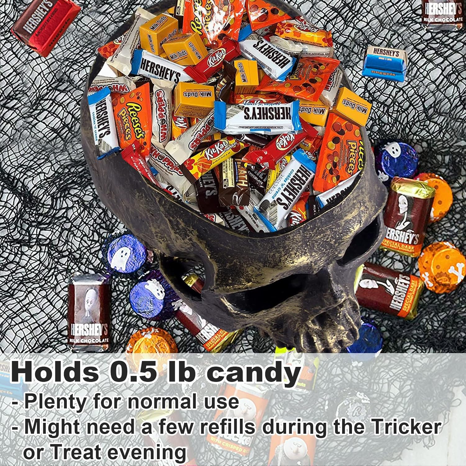 - 【HOLDS 50+ CANDIES】Deep skull bowl fits over 50 wrapped treats.