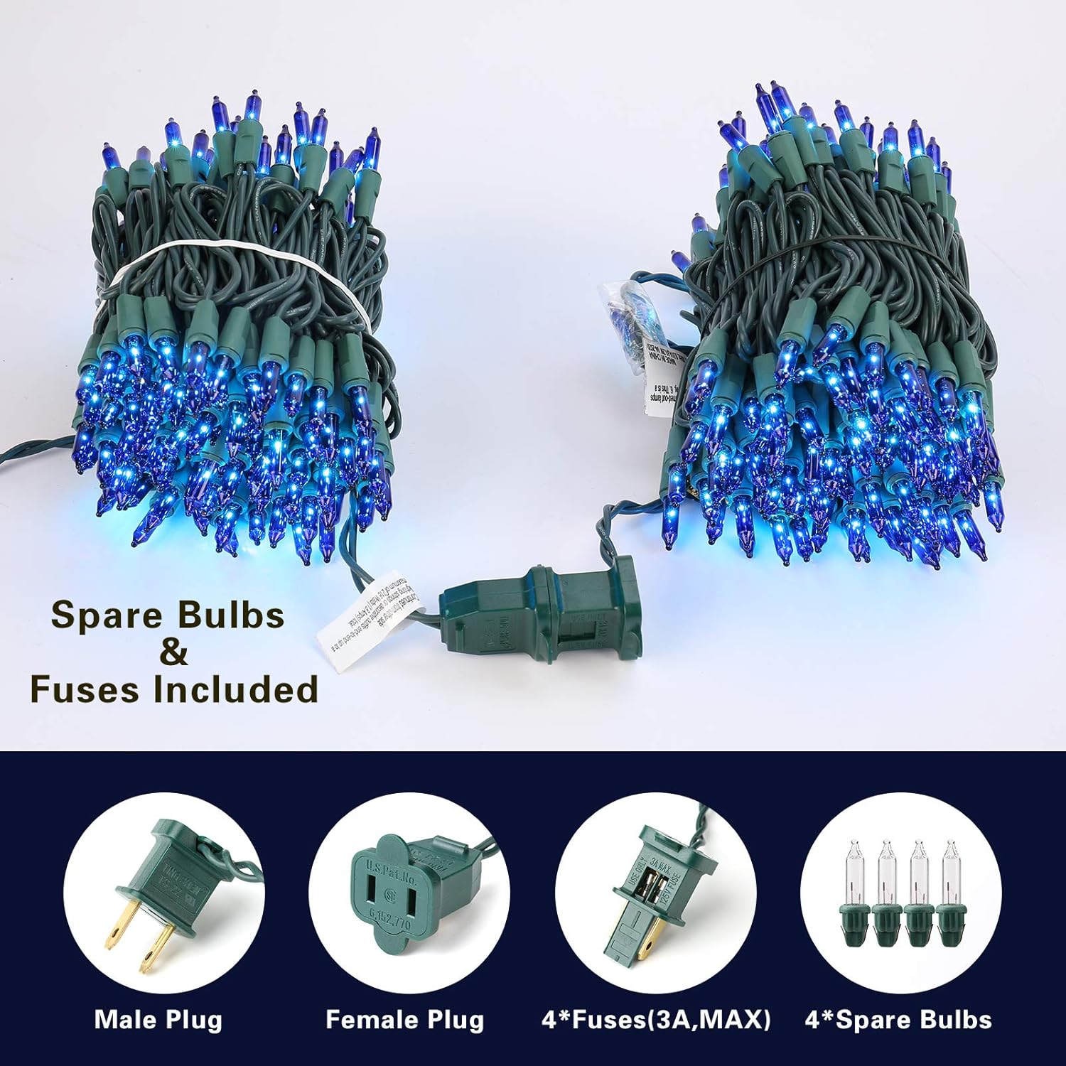 - 300 Counts Blue Mini Lights: Old-fashion Blue incandescent Christmas light set, creates a festive atmosphere, celebrates Christmas, New Year, Birthdays and special holidays, cast a magical look to your house and garden, and impress your family friends, and relatives with this easy to set up!