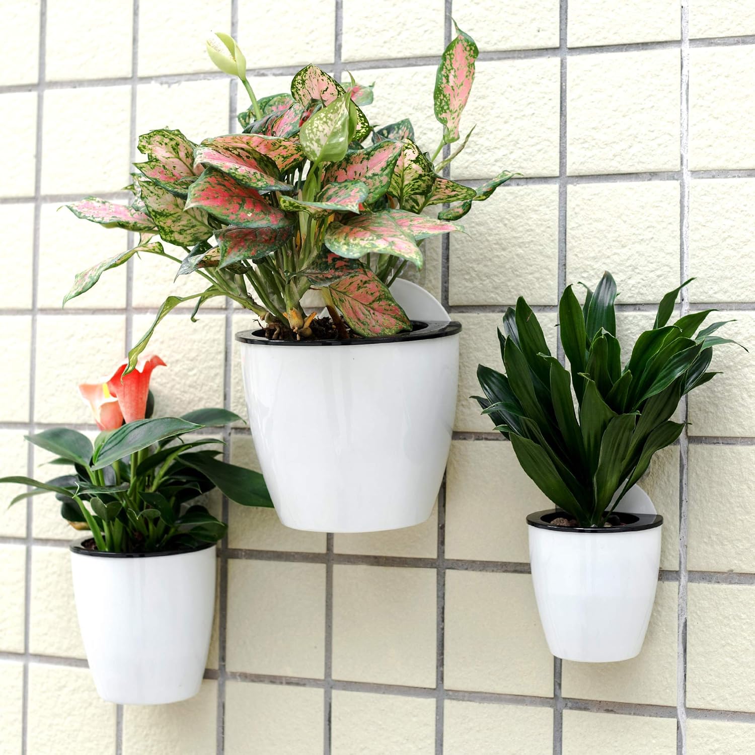 - Wall Décor: Wall decor planter pots holder with polishing processing modern design, sleek clear white, fancy slick surface, attractive looking, simple and artistic, will nicely compliment your home, office, kitchen, garden, lawn and patio. Vertical living wall planter, wall mounted indoor outdoor hanging flower pots, small lazy self watering flowerpot, wall hang / window boxes.