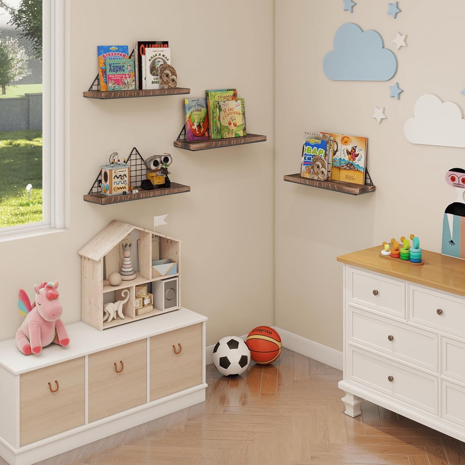 - STURDY AND EASY TO INSTALL: Fully assembled hanging shelves, sturdy design mounts securely and easily to the wall, use screws and anchors or traceless hangers; Each shelf supports up to 22 pounds
