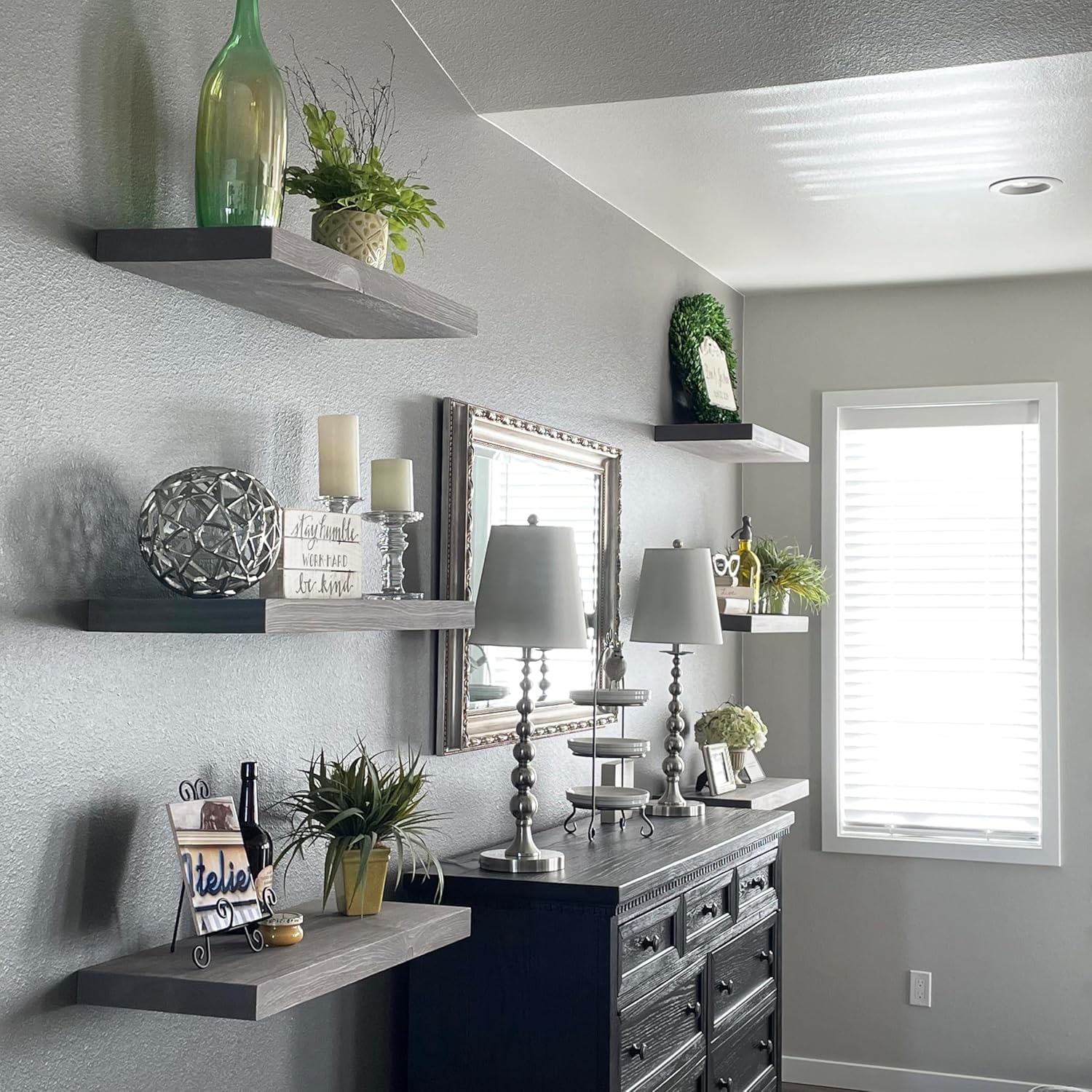 - Elevate Your Space with Rustic Charm: Transform your living room or any space with our large floating shelves for wall. These 36 inch floating shelf beauties, crafted from natural wood, add a touch of rustic warmth and provide ample display space for your cherished items.