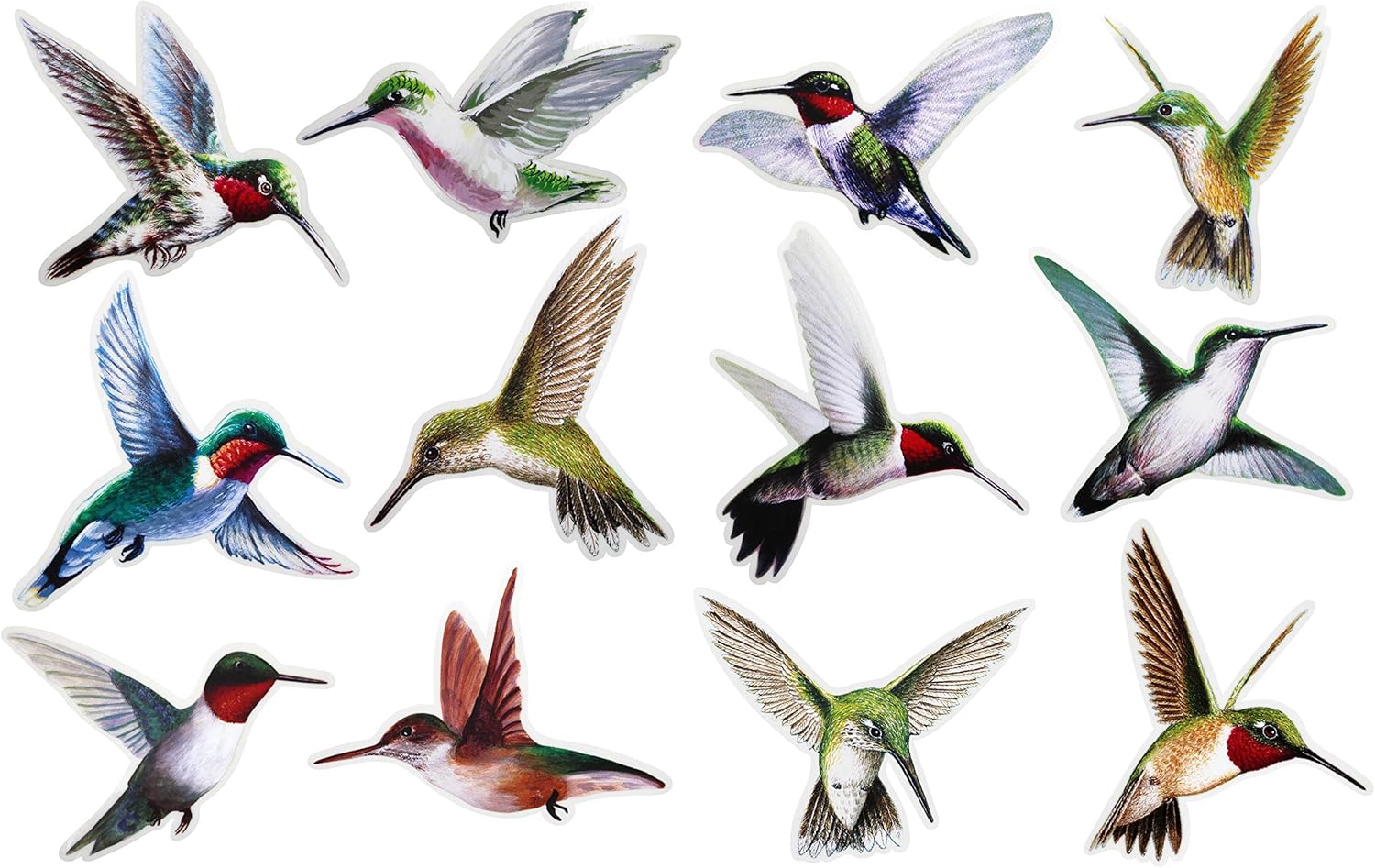 Iconikal 24-Count Large 6-inch Static Cling Window Decorations, Hummingbirds Flying