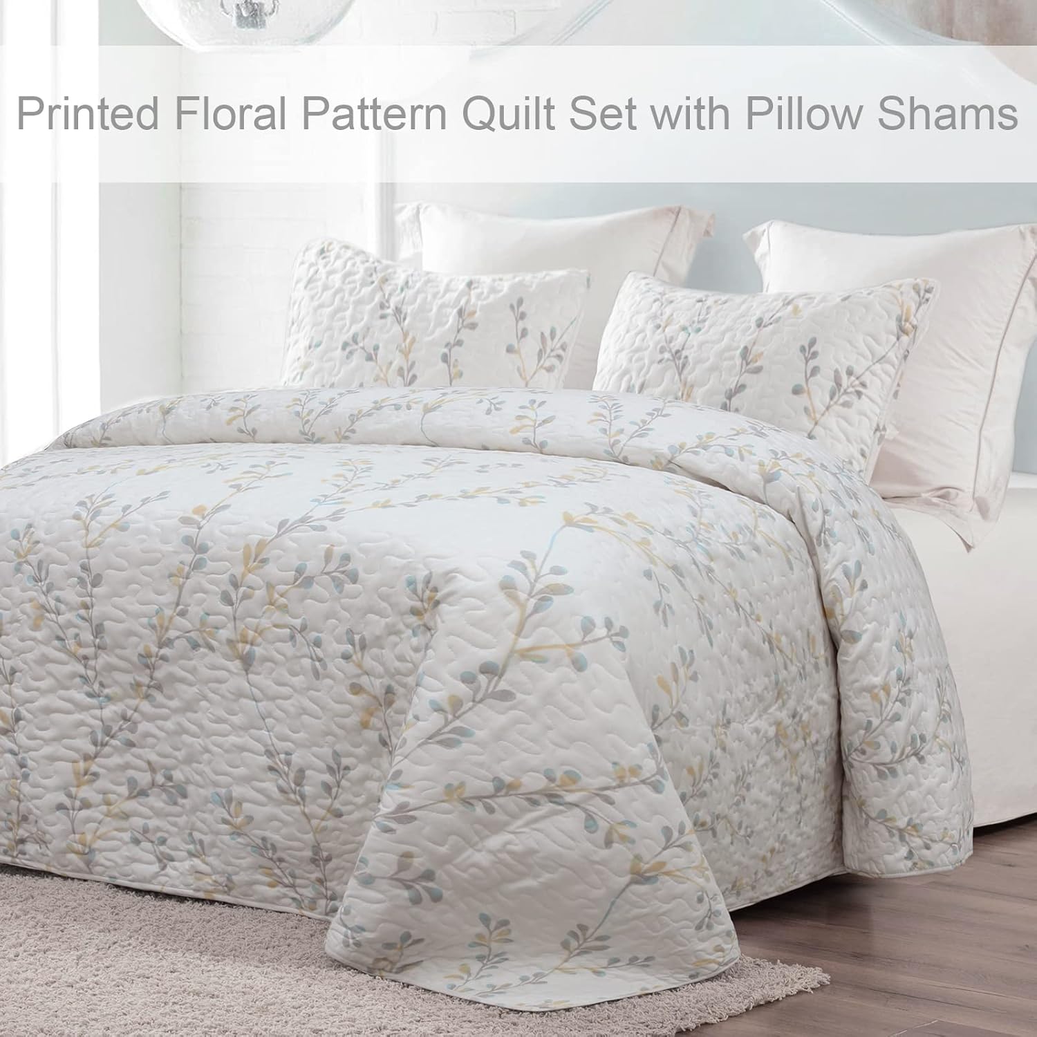 - Premium Material: The floral quilts sets are made of brushed microfiber and filled with polyester which make the quilt ultra-soft, breathable, silk touch, lightweight and suitable for all seasons