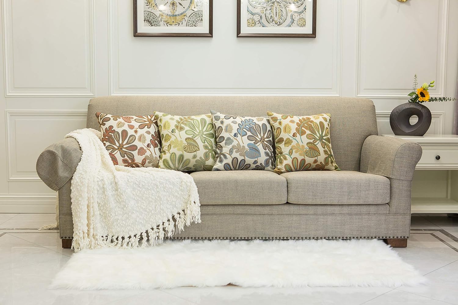 Set of 2 Jacquard Tropical Leaf Pattern Throw Pillow Covers Decorative Pillowcase 22X22 Inches,Blue Cream