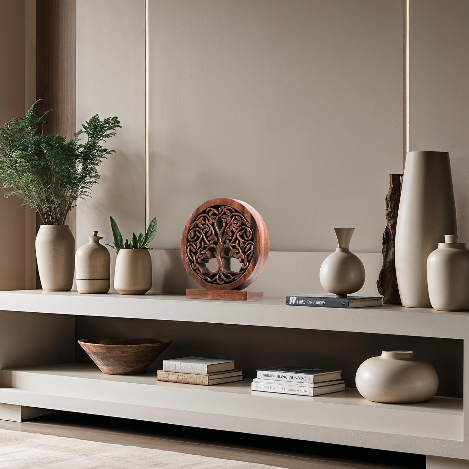 Decozen Solid Wood Tree of Life Sculpture - Home Decor, Living Room, Boho, Shelf, Coffee Table, Centerpiece Table Decorations, Mantle, Dining Table Centerpiece, Bathroom Shelf, Entryway, Farmhouse