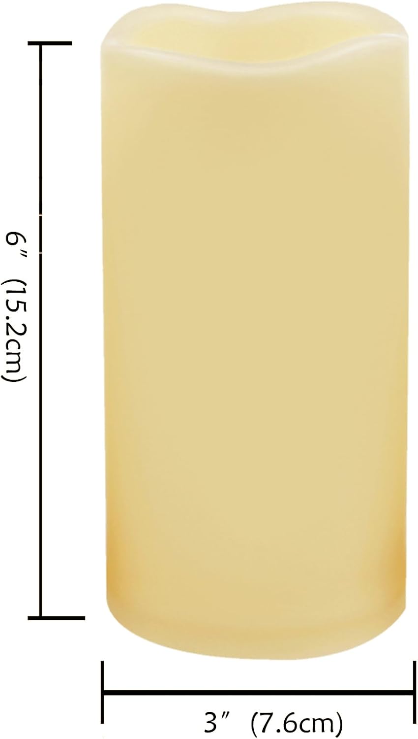 CANDLE CHOICE Waterproof Outdoor Battery Operated Flameless Candles Remote Timer Ivory Plastic Realistic Flickering Fake Electric LED Pillars Lantern Garden Wedding Christmas Decorations 3”x6” 6 Pack
