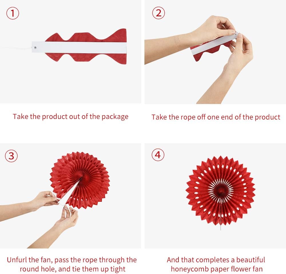 - Easy to assemble and uniquely designed : These hanging paper fans have a hanging string attached,just unfold the paper flower fan and fix it with the rope of the paper flower fan, then you can hang it to your favorite place and decorate your party perfectly in a few minutes.