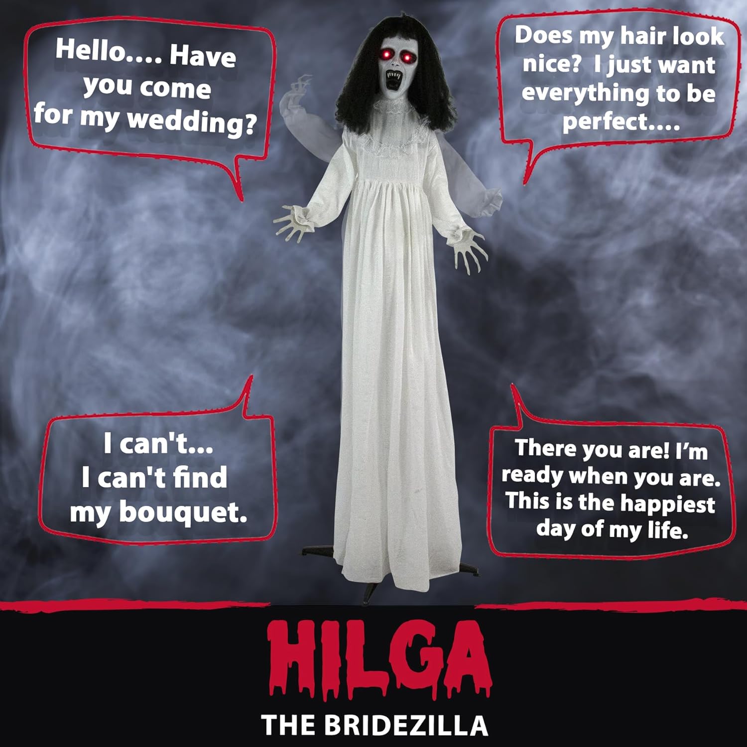Haunted Hill Farm Life-Size Scary Demon Bride Halloween Animatronic with Touch Activated Lights and Sound, Battery Operated Indoor or Covered Outdoor Halloween Decorations for Home or Haunted House