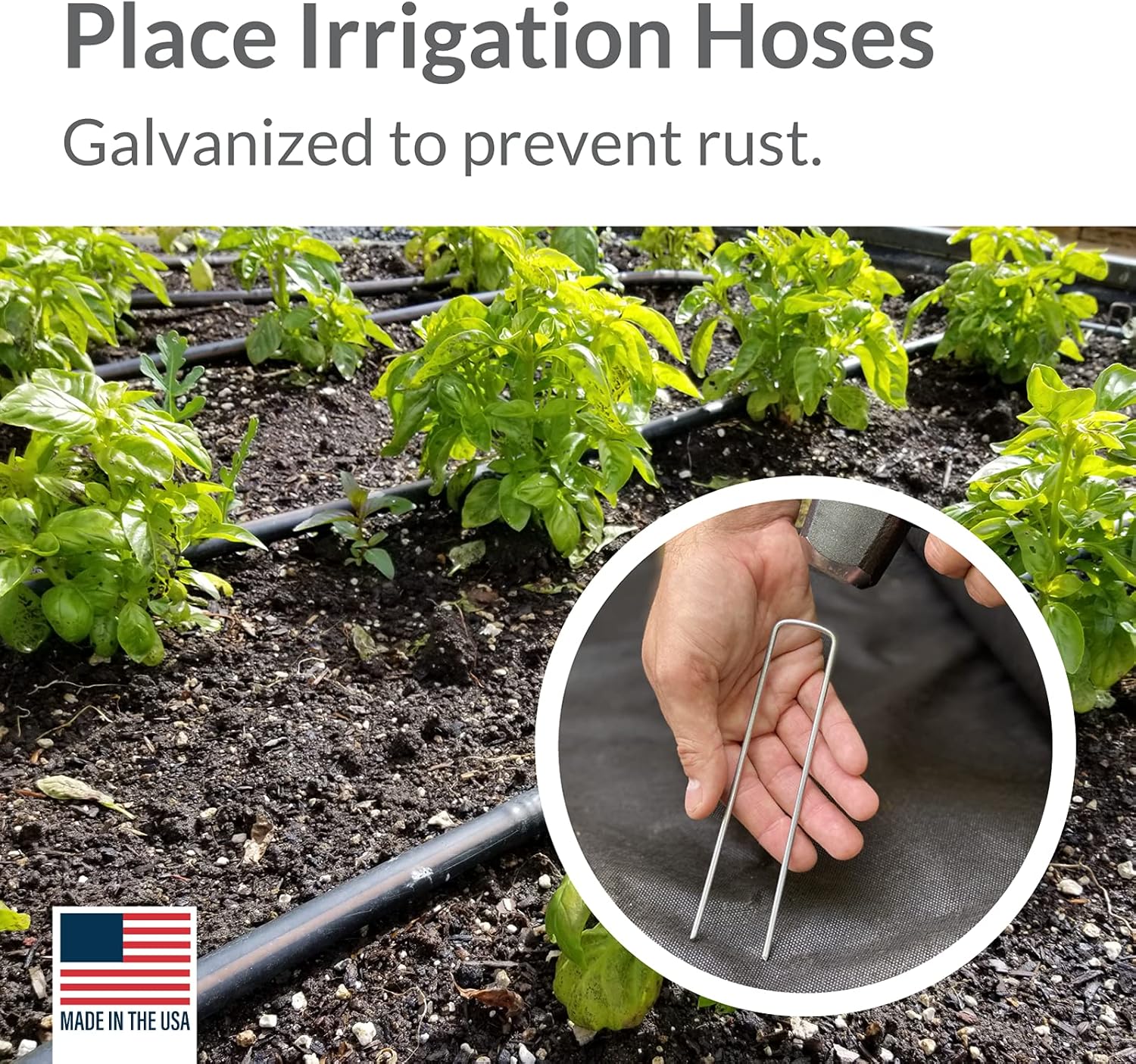Pinnacle Mercantile USA Made 450 Pack Garden Landscape Staples Weed Barrier Fabric Stakes Galvanized 6 inch Pins Anti Rust Sod Staple 11 Gauge Steel