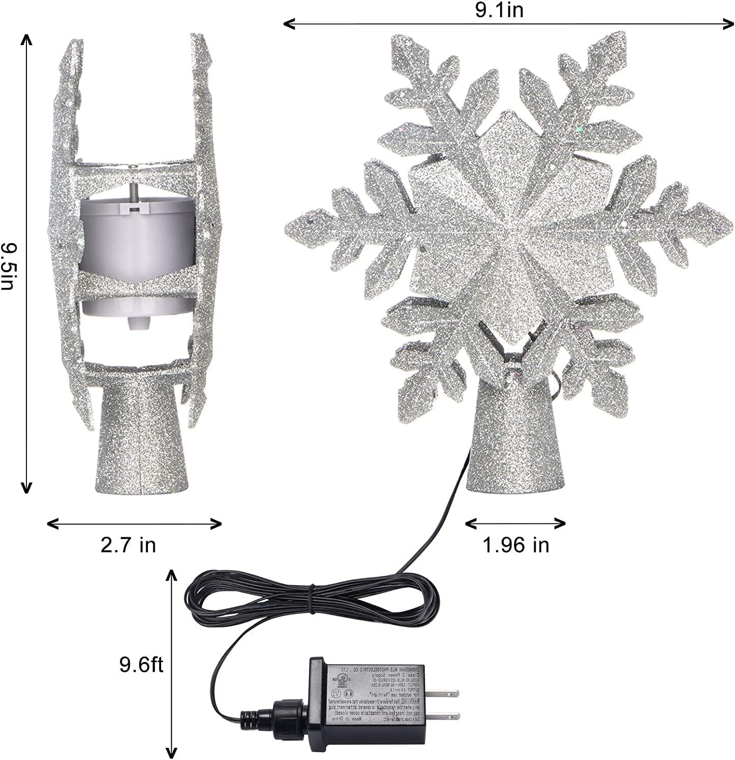- Silver Christmas decorations, this Christmas tree topper built-in snowflake projector lamp,bring movable snowflakes to your ceiling, your ceiling will be filled with large, clear snowflakes.