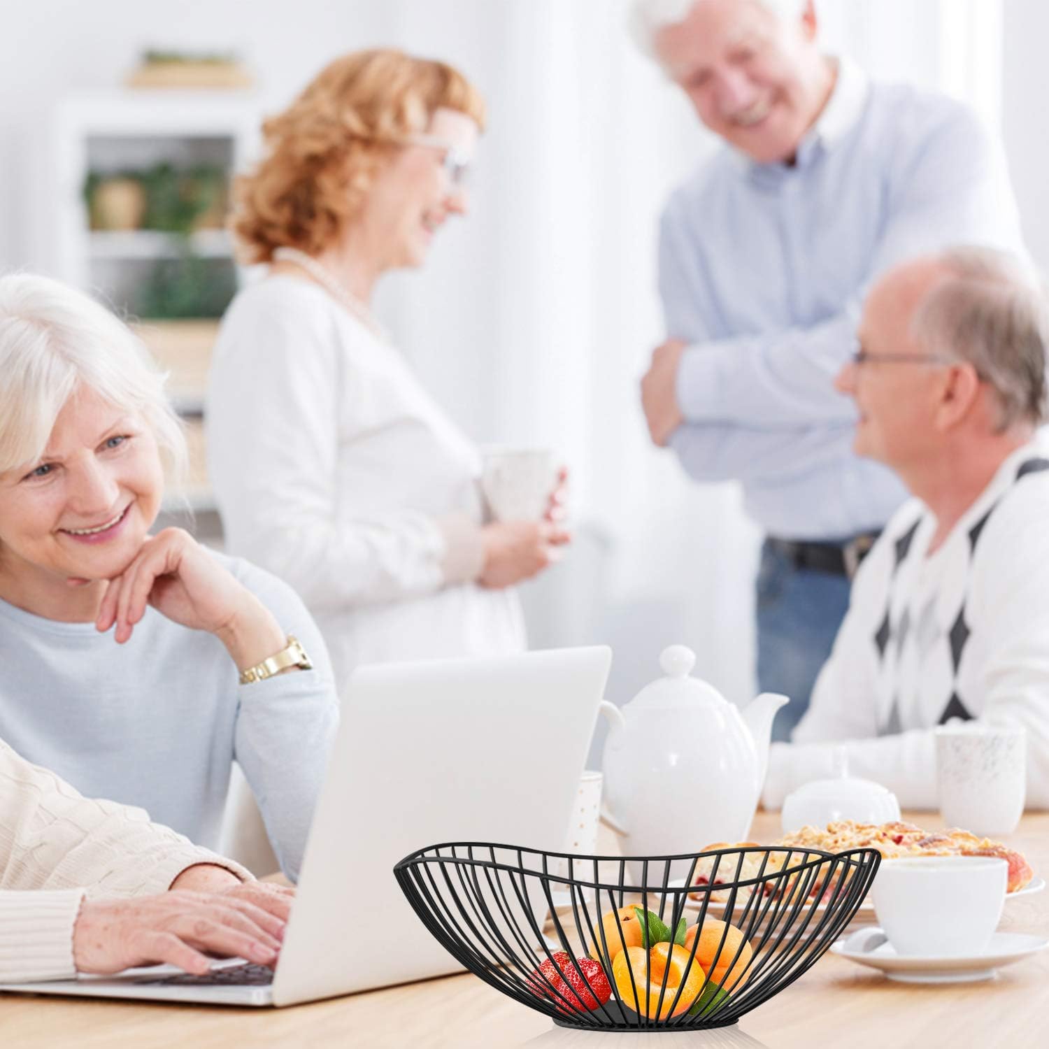 Metal Wire Fruit Basket, Black Fruit Bowl for Kitchen Counter, Fruit Holder Stand Storage Baskets for Countertop, Home Decor, Table Centerpieces, Vegetable Bowls for Fruits, Veggies, Snacks (Black)