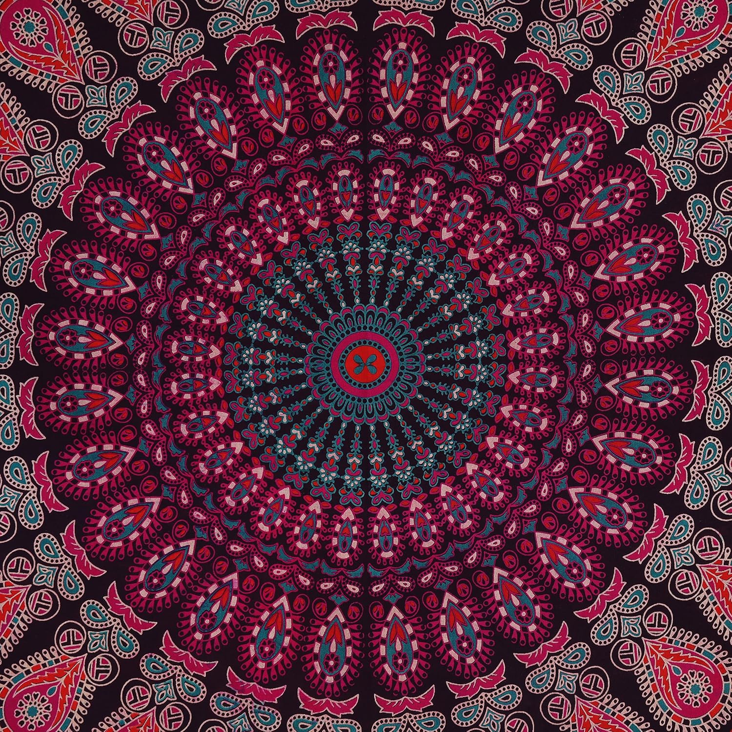Bless International Handmade Indian hippie Bohemian Psychedelic Peacock Mandala Wall hanging College Dorm Beach Throws Table Cloth Bedding Tapestry (Purple Pink, Poster(30x40Inches)(76x101cms))