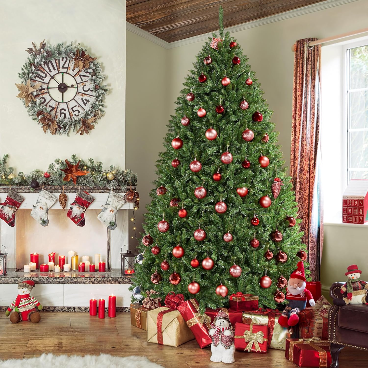 - Ultra-full Christmas Tree: This artificial Christmas tree features a hinged design with numerous branches and tips, creating a full, fluffy appearance from every angle for a beautiful holiday display
