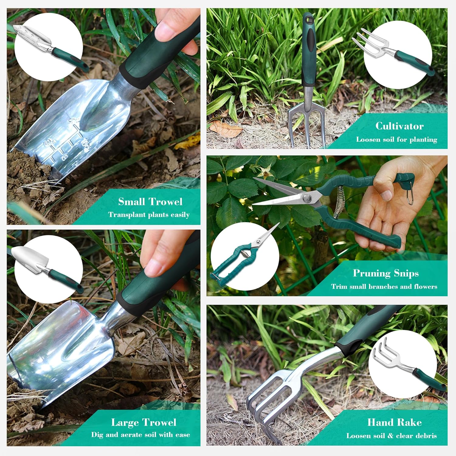 FiveJoy Garden Tool Set, 11 PCS Aluminum Gardening Hand Tools with Tote Bag, Ergonomic Handle, Gift for Women, Men, Mom, Dad, Garden Starter Kit
