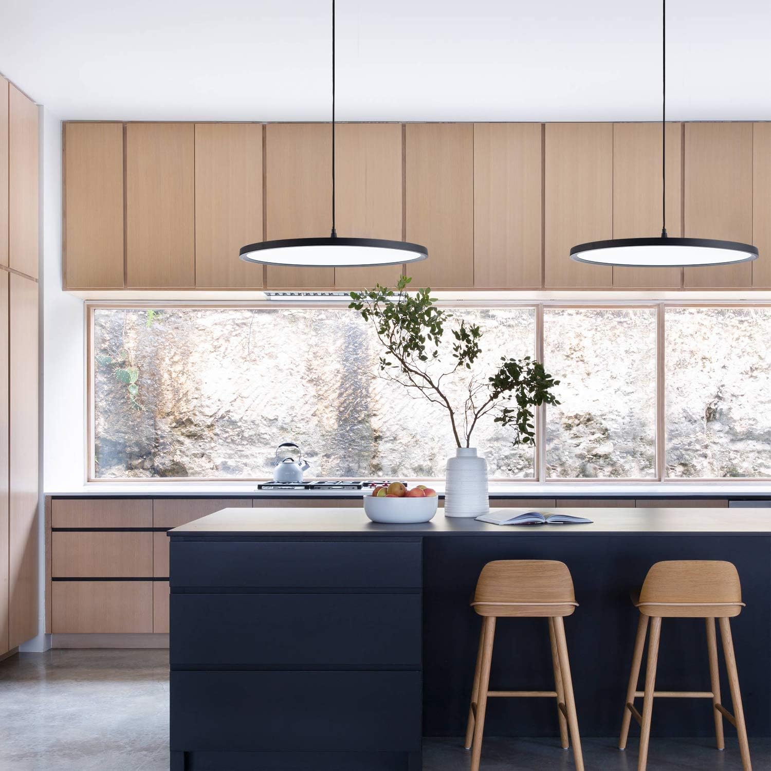 - 【DISC DESIGN】:This modern LED chandelier is ultra-thin design, attractive appearance.Dimensions L23.5'' x 0.59''.Ideal for dining room, office, meeting room, living room, kitchen island, etc