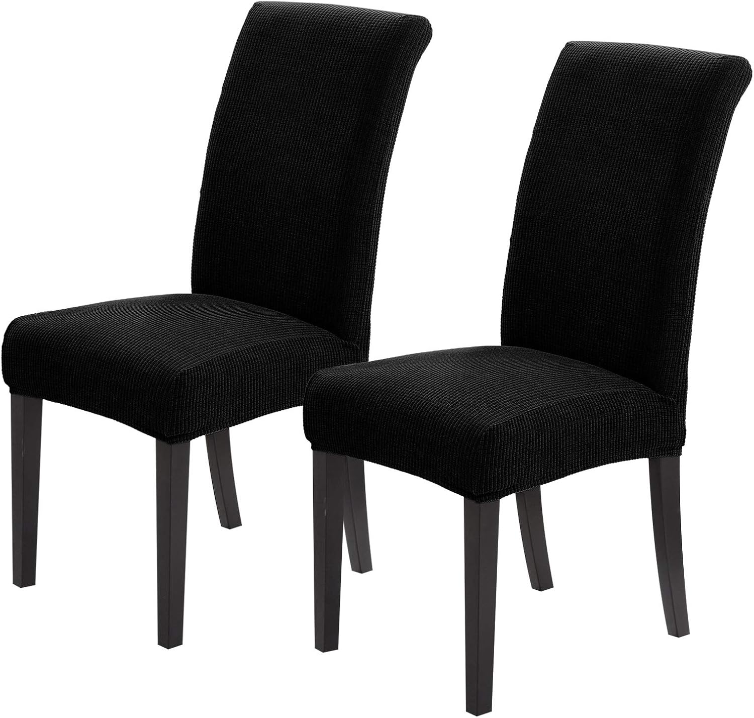 Joccun Chair Covers for Dining Room Set of 2,Dining Chair Slipcovers Stretch Dining Room Chair Covers Seat Protector,Washable Parsons Chair Cover for Home,Hotel,Banquet(Black,2 Pack)