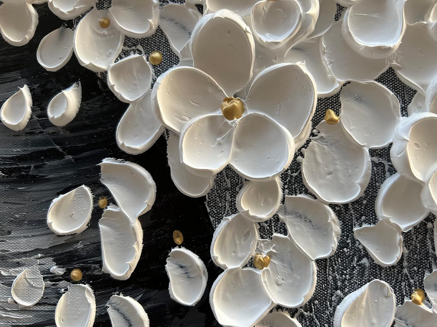 Epicler 30x45 inch Hand-Painted Oil Painting, White Bouquet Oil Painting, Canvas Wall Decoration Painting.